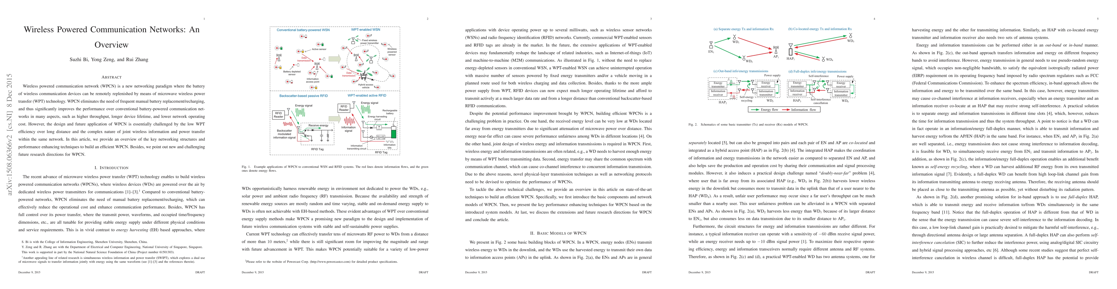 This paper provides an overview of wireless powered communication networks (WPCN), highlighting their benefits over conventional networks, such as higher throughput and longer device lifetime, while addressing challenges like low wireless power transfer efficiency and complex joint information and power transfer. It also outlines key networking structures and techniques for efficiency, and identifies future research directions.