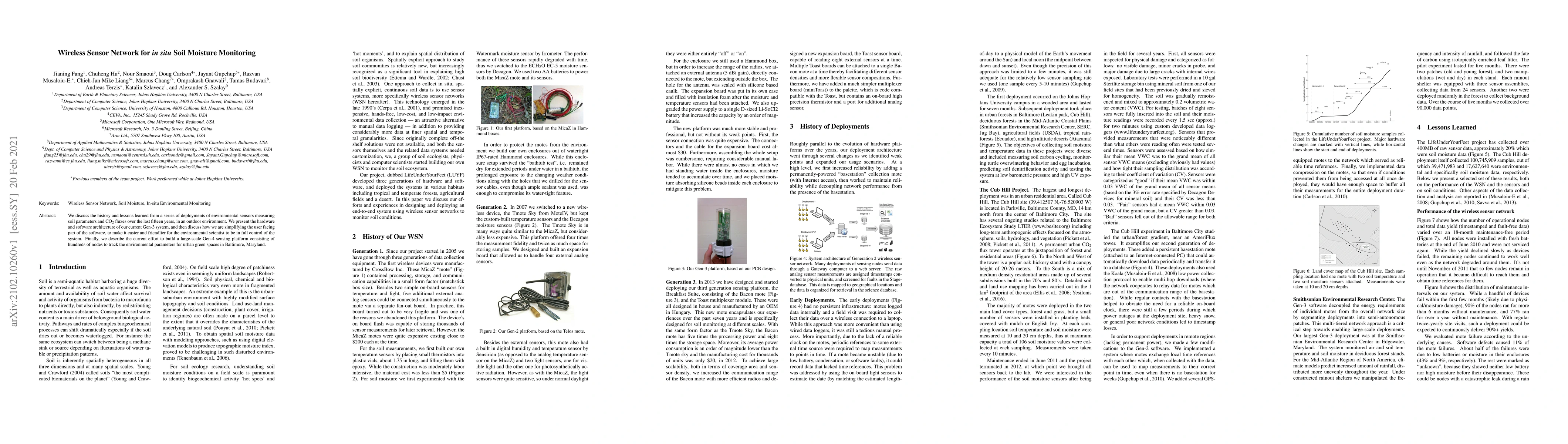 A research paper discusses advancements in wireless sensor networks for monitoring soil moisture and environmental parameters, with a focus on simplifying user interfaces and developing large-scale urban green space sensing platforms.