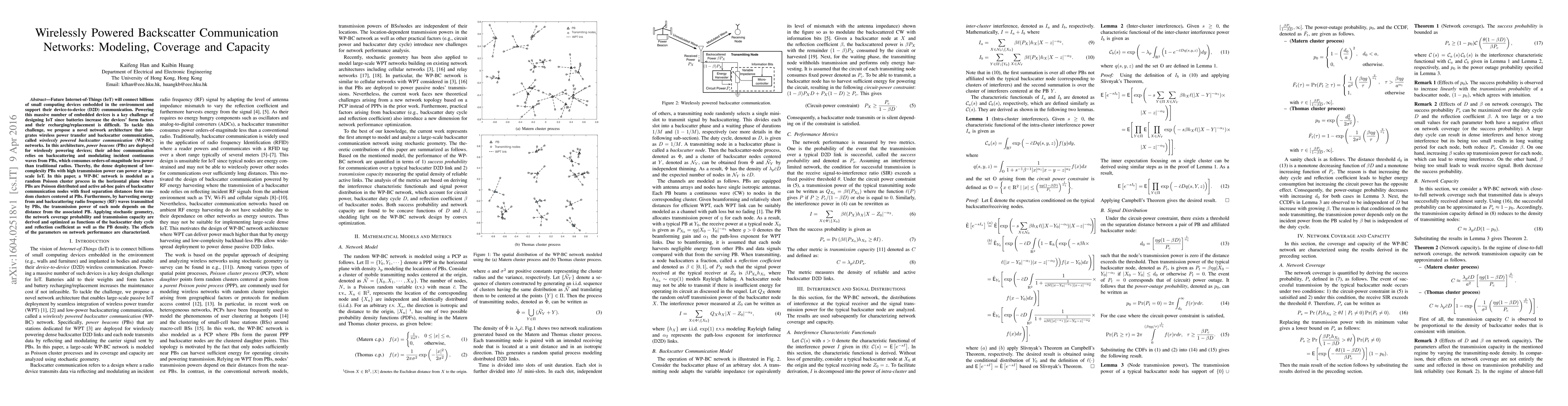 This paper proposes a novel wirelessly powered backscatter communication (WP-BC) network architecture to power Internet-of-Things (IoT) devices using wireless power transfer and backscatter communication. The network's performance, including coverage probability and capacity, is modeled using stochastic geometry and optimized based on backscatter parameters and power beacon density.