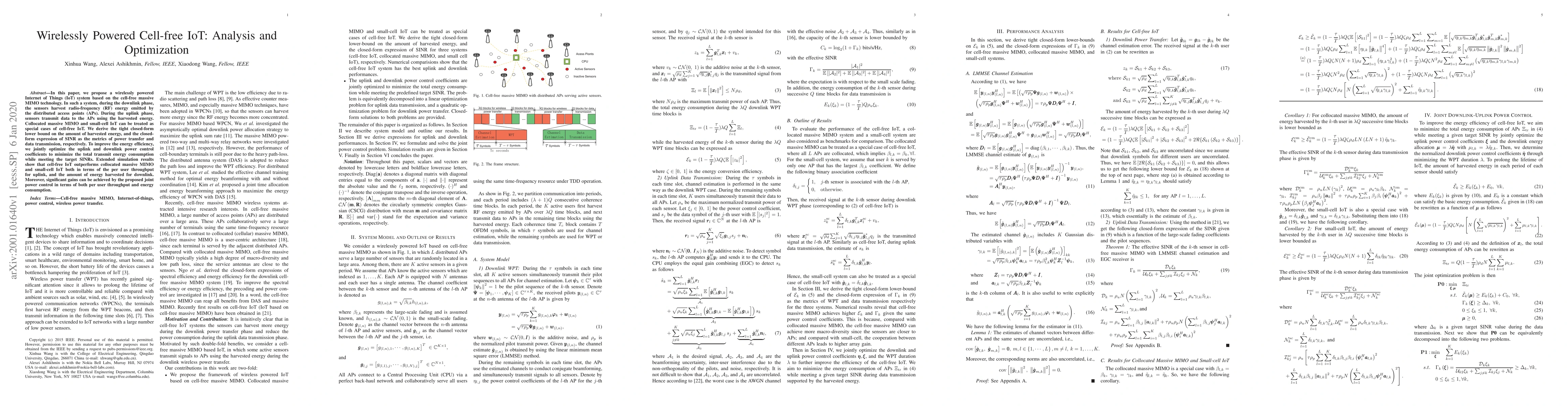 This paper proposes a wirelessly powered IoT system using cell-free massive MIMO, optimizing power control to enhance energy efficiency and throughput. Simulation results demonstrate superior performance over traditional massive MIMO and small-cell IoT systems.