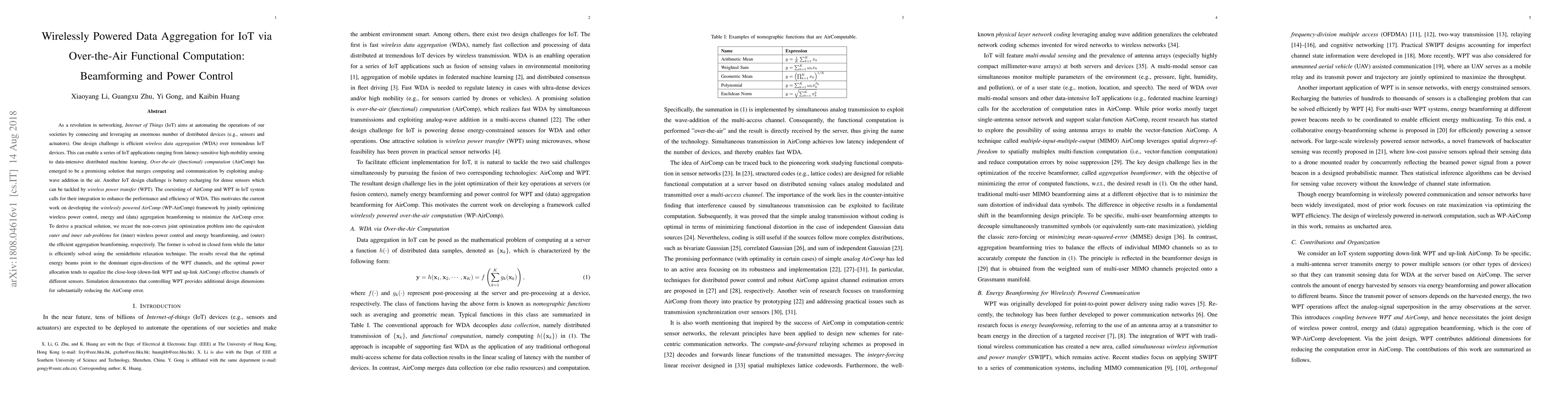 This paper proposes a wirelessly powered over-the-air functional computation framework for IoT data aggregation, optimizing wireless power control and beamforming to minimize computation errors. The joint optimization problem is decomposed into inner wireless power control and outer aggregation beamforming, solved using closed-form and semidefinite relaxation techniques, respectively.