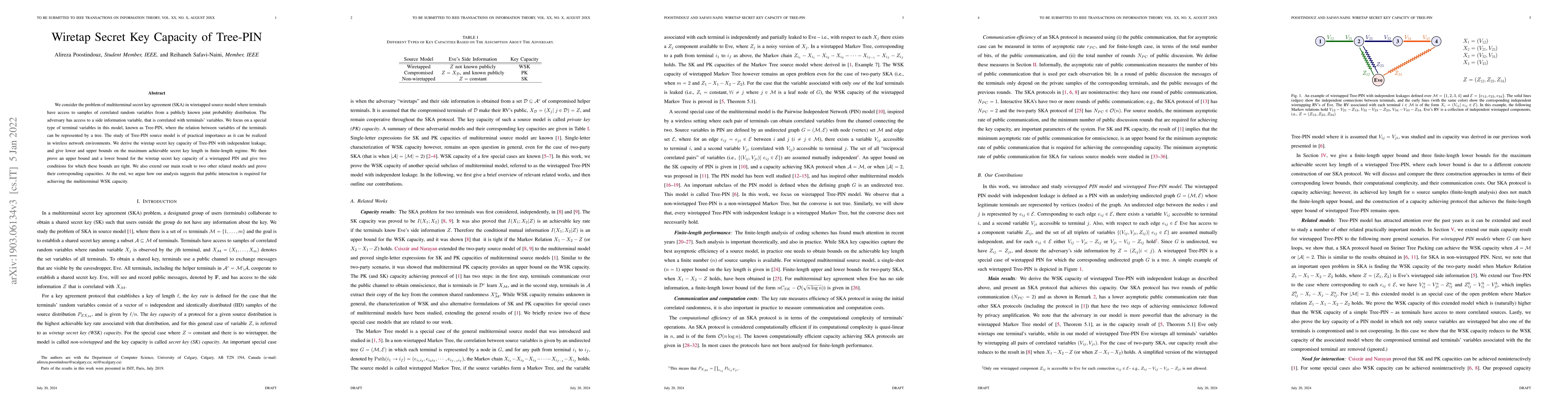 We consider the problem of multiterminal secret key agreement (SKA) in wiretapped source model where terminals have access to samples of correlated random variables from a publicly known joint probability distribution. The adversary has access to a side information variable, that is correlated with terminals' variables. We focus on a special type of terminal variables in this model, known as Tree-PIN, where the relation between variables of the terminals can be represented by a tree. The study of Tree-PIN source model is of practical importance as it can be realized in wireless network environments. We derive the wiretap secret key capacity of Tree-PIN with independent leakage, and give lower and upper bounds on the maximum achievable secret key length in finite-length regime. We then prove an upper bound and a lower bound for the wiretap secret key capacity of a wiretapped PIN and give two conditions for which these bounds are tight. We also extend our main result to two other related models and prove their corresponding capacities. At the end, we argue how our analysis suggests that public interaction is required for achieving the multiterminal WSK capacity.