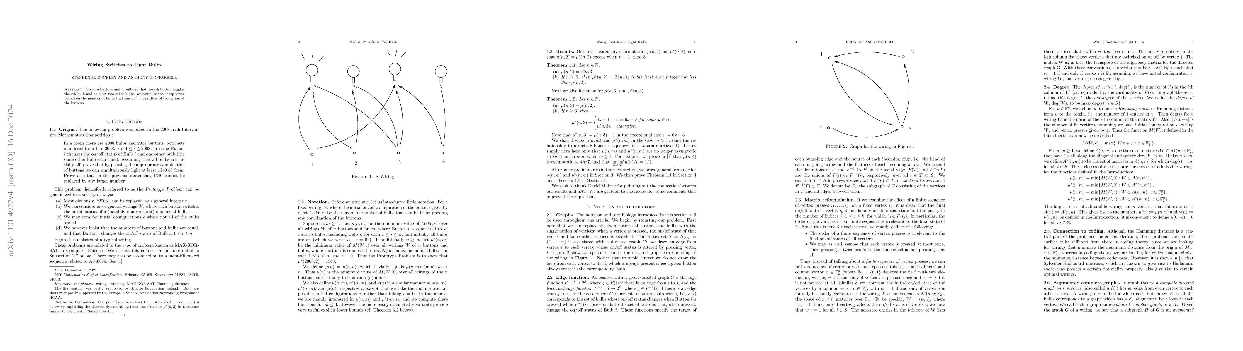 Given n buttons and n bulbs so that the ith button toggles the ith bulb and at most two other bulbs, we compute the sharp lower bound on the number of bulbs that can be lit regardless of the action of the buttons.