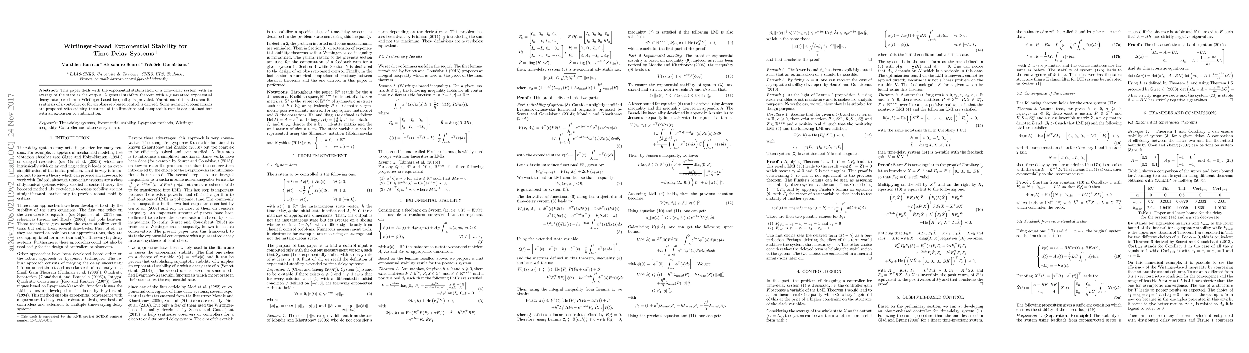 This paper presents a new stability theorem for time-delay systems using a Wirtinger-based inequality to ensure exponential decay-rate, and extends it for controller and observer-based control synthesis, achieving comparable stabilization results to existing methods.