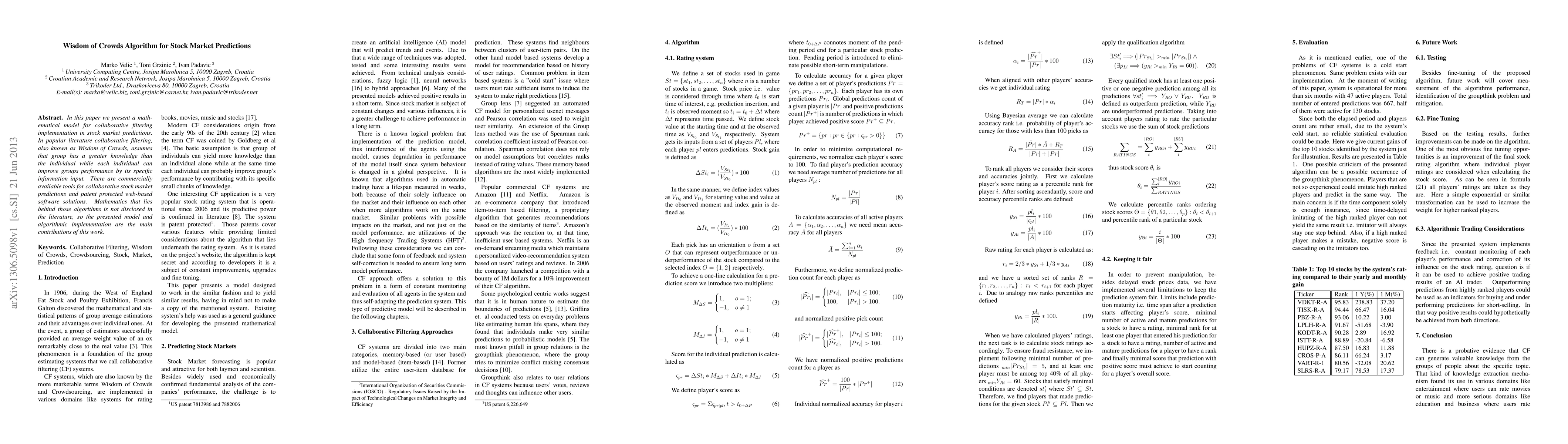 This paper presents a mathematical model for collaborative filtering in stock market predictions, contributing to the understanding of underlying algorithms used in commercial tools.