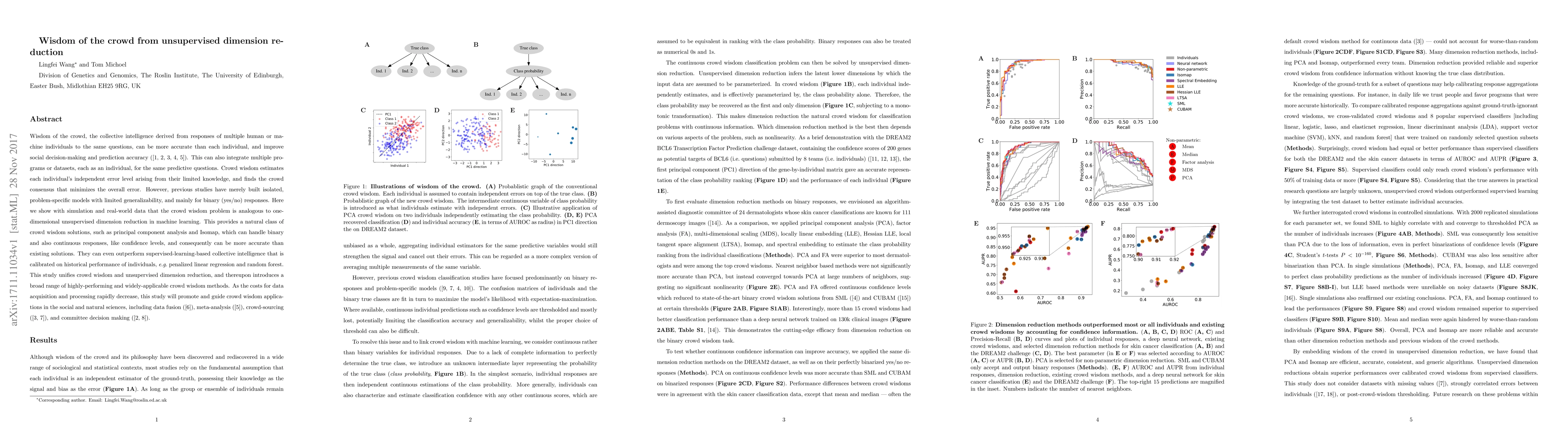 This paper demonstrates that crowd wisdom can be analogous to unsupervised dimension reduction in machine learning, proposing that techniques like principal component analysis and Isomap can enhance crowd decision-making accuracy for both binary and continuous responses. These methods outperform traditional supervised learning approaches, offering a unified and broadly applicable framework for crowd wisdom applications.