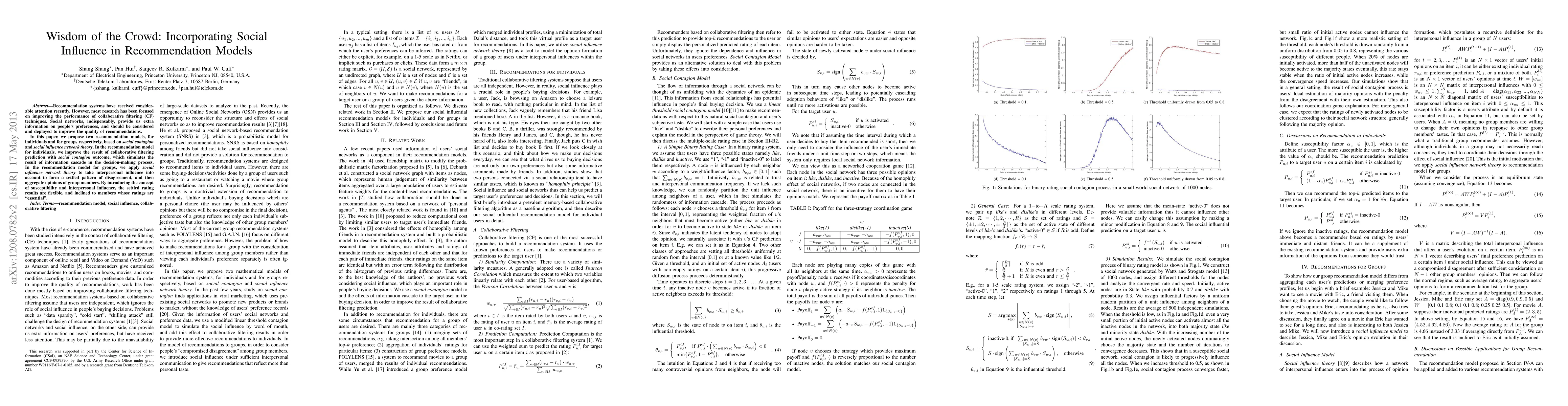 This paper proposes two recommendation models that incorporate social influence to improve personal and group recommendations, leveraging social contagion and social influence network theory for better decision-making.