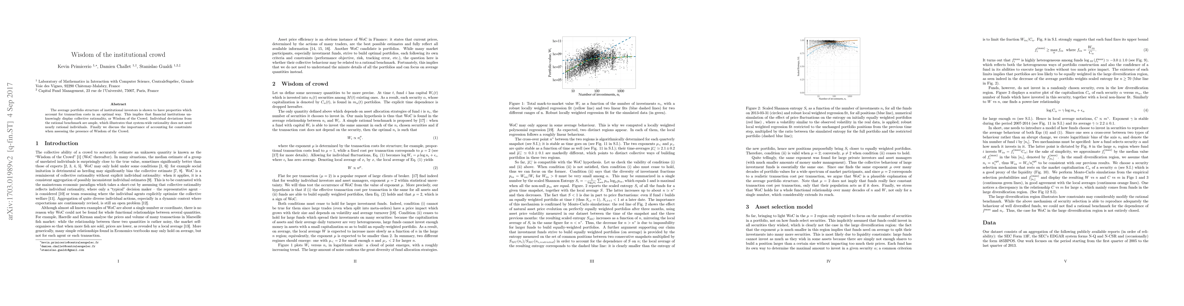 The paper demonstrates that institutional investors collectively exhibit rationality through their average portfolio structure, optimizing transaction costs, despite individual deviations. It highlights the significance of considering constraints when assessing the Wisdom of the Crowd.