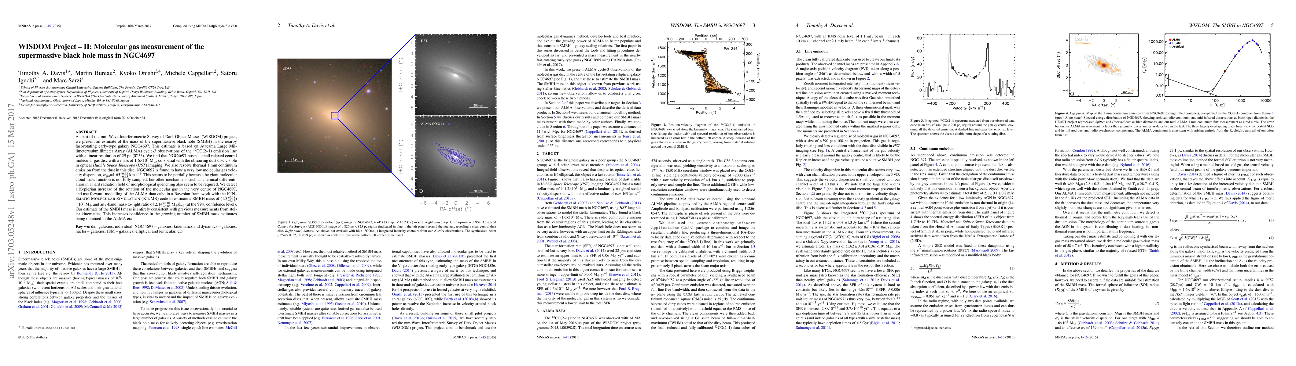 The WISDOM Project II estimates the supermassive black hole mass in NGC4697 using ALMA observations of the 12CO(2-1) emission line. The galaxy hosts a small central molecular gas disc with a mass of 1.6x10^7 Msun, leading to a SMBH mass estimate of ($1.3_{-0.17}^{+0.18})\times10^8$ Msun, consistent with previous stellar kinematic measurements.