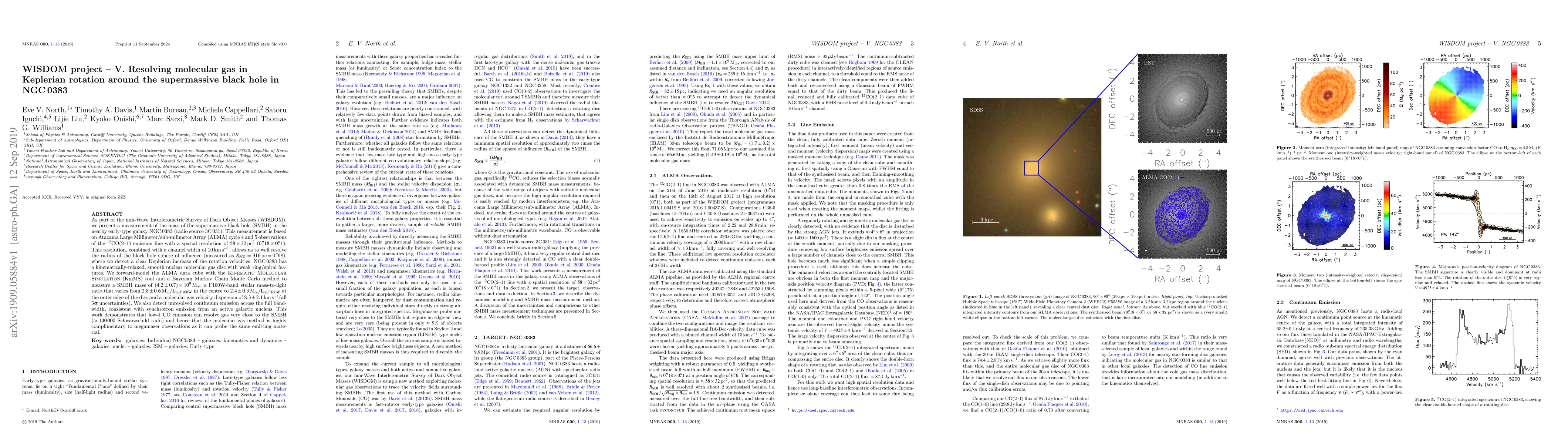 As part of the mm-Wave Interferometric Survey of Dark Object Masses (WISDOM), we present a measurement of the mass of the supermassive black hole (SMBH) in the nearby early-type galaxy NGC 0383 (radio source 3C 031). This measurement is based on Atacama Large Millimeter/sub-milimeter Array (ALMA) cycle 4 and 5 observations of the 12CO(2-1) emission line with a spatial resolution of 58x32pc2 (0."18x0."1). This resolution, combined with a channel width of 10 km/s, allows us to well resolve the radius of the black hole sphere of influence (measured as R_SOI = 316pc = 0."98), where we detect a clear Keplerian increase of the rotation velocities. NGC 0383 has a kinematically-relaxed, smooth nuclear molecular gas disc with weak ring/spiral features. We forward-model the ALMA data cube with the Kinematic Molecular Simulation (KinMS) tool and a Bayesian Markov Chain Monte Carlo method to measure a SMBH mass of (4.2+/-0.7)x10^9 Msun, a F160W-band stellar mass-to-light ratio that varies from 2.8+/-0.6 Msun/Lsun in the centre to 2.4+/-0.3 Msun/Lsun at the outer edge of the disc and a molecular gas velocity dispersion of 8.3+/-2.1 km/s (all 3-sigma uncertainties). We also detect unresolved continuum emission across the full bandwidth, consistent with synchrotron emission from an active galactic nucleus. This work demonstrates that low-J CO emission can resolve gas very close to the SMBH (~140,000 Schwarzschild radii) and hence that the molecular gas method is highly complimentary to megamaser observations as it can probe the same emitting material.
