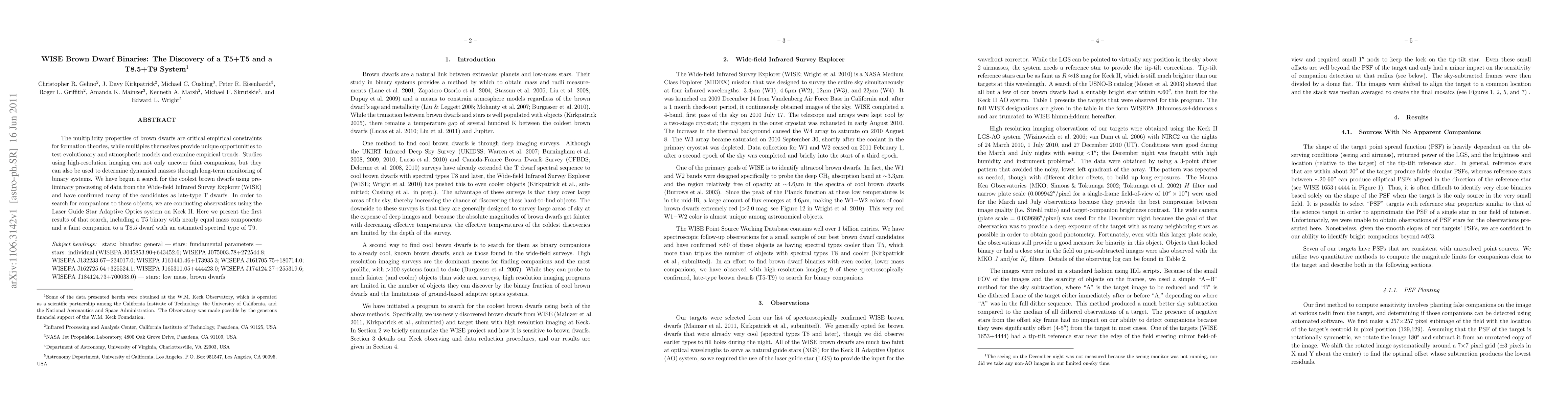 The multiplicity properties of brown dwarfs are critical empirical constraints for formation theories, while multiples themselves provide unique opportunities to test evolutionary and atmospheric models and examine empirical trends. Studies using high-resolution imaging can not only uncover faint companions, but they can also be used to determine dynamical masses through long-term monitoring of binary systems. We have begun a search for the coolest brown dwarfs using preliminary processing of data from the Wide-field Infrared Survey Explorer (WISE) and have confirmed many of the candidates as late-type T dwarfs. In order to search for companions to these objects, we are conducting observations using the Laser Guide Star Adaptive Optics system on Keck II. Here we present the first results of that search, including a T5 binary with nearly equal mass components and a faint companion to a T8.5 dwarf with an estimated spectral type of T9.