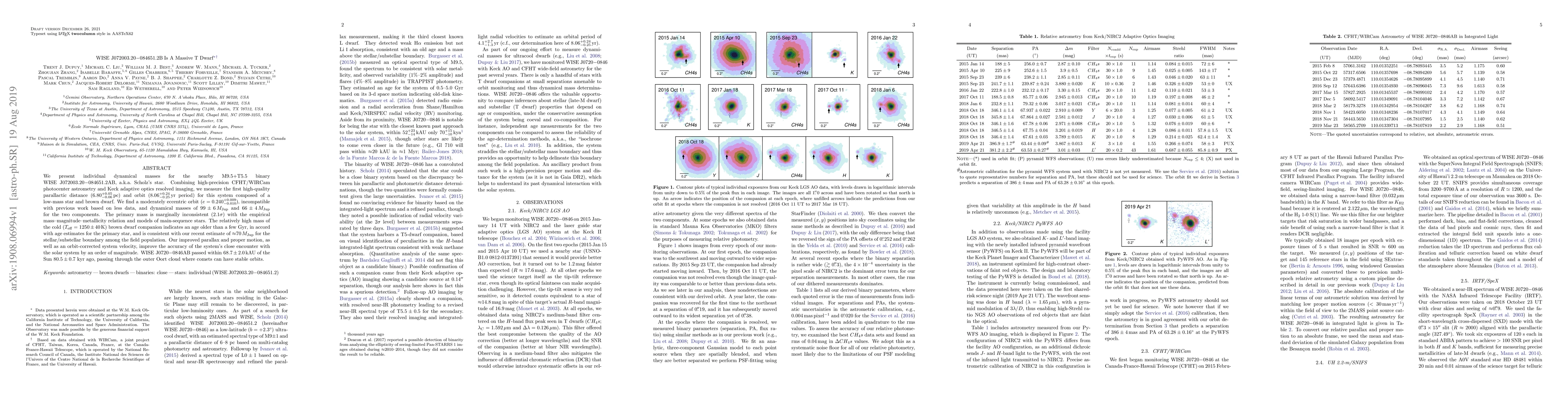 We present individual dynamical masses for the nearby M9.5+T5.5 binary WISE J072003.20$-$084651.2AB, a.k.a. Scholz's star. Combining high-precision CFHT/WIRCam photocenter astrometry and Keck adaptive optics resolved imaging, we measure the first high-quality parallactic distance ($6.80_{-0.06}^{+0.05}$ pc) and orbit ($8.06_{-0.25}^{+0.24}$ yr period) for this system composed of a low-mass star and brown dwarf. We find a moderately eccentric orbit ($e = 0.240_{-0.010}^{+0.009}$), incompatible with previous work based on less data, and dynamical masses of $99\pm6$ $M_{\rm Jup}$ and $66\pm4$ $M_{\rm Jup}$ for the two components. The primary mass is marginally inconsistent (2.1$\sigma$) with the empirical mass$-$magnitude$-$metallicity relation and models of main-sequence stars. The relatively high mass of the cold ($T_{\rm eff} = 1250\pm40$ K) brown dwarf companion indicates an age older than a few Gyr, in accord with age estimates for the primary star, and is consistent with our recent estimate of $\approx$70 $M_{\rm Jup}$ for the stellar/substellar boundary among the field population. Our improved parallax and proper motion, as well as an orbit-corrected system velocity, improve the accuracy of the system's close encounter with the solar system by an order of magnitude. WISE J0720$-$0846AB passed within $68.7\pm2.0$ kAU of the Sun $80.5\pm0.7$ kyr ago, passing through the outer Oort cloud where comets can have stable orbits.
