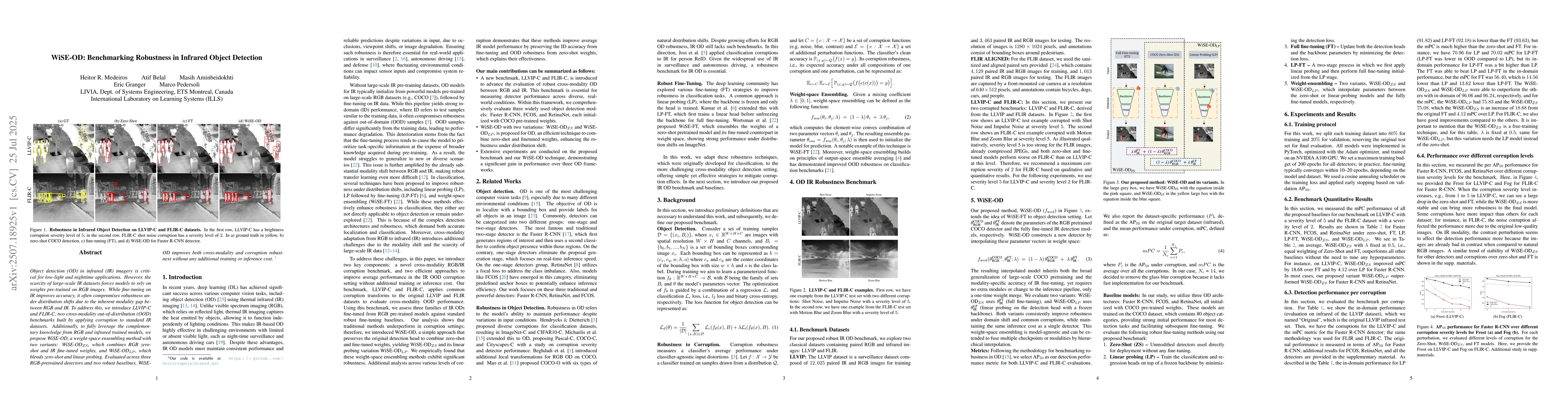 Object detection (OD) in infrared (IR) imagery is critical for low-light and nighttime applications. However, the scarcity of large-scale IR datasets forces models to rely on weights pre-trained on RGB images. While fine-tuning on IR improves accuracy, it often compromises robustness under distribution shifts due to the inherent modality gap between RGB and IR. To address this, we introduce LLVIP-C and FLIR-C, two cross-modality out-of-distribution (OOD) benchmarks built by applying corruption to standard IR datasets. Additionally, to fully leverage the complementary knowledge from RGB and infrared trained models, we propose WiSE-OD, a weight-space ensembling method with two variants: WiSE-OD$_{ZS}$, which combines RGB zero-shot and IR fine-tuned weights, and WiSE-OD$_{LP}$, which blends zero-shot and linear probing. Evaluated across three RGB-pretrained detectors and two robust baselines, WiSE-OD improves both cross-modality and corruption robustness without any additional training or inference cost.