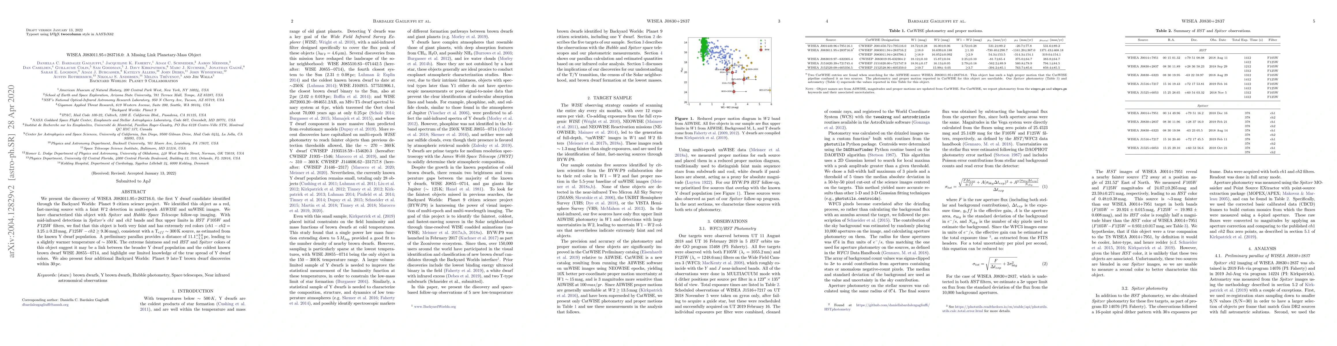 We present the discovery of WISEA J083011.95+283716.0, the first Y dwarf candidate identified through the Backyard Worlds: Planet 9 citizen science project. We identified this object as a red, fast-moving source with a faint $W2$ detection in multi-epoch \textit{AllWISE} and unWISE images. We have characterized this object with Spitzer Space Telescope and \textit{Hubble Space Telescope} follow-up imaging. With mid-infrared detections in \textit{Spitzer}'s \emph{ch1} and \emph{ch2} bands and flux upper limits in Hubble Space Telescope $F105W$ and $F125W$ filters, we find that this object is both very faint and has extremely red colors ($ch1-ch2 = 3.25\pm0.23$ mag, $F125W-ch2 \geq 9.36$ mag), consistent with a T$_{eff}\sim300$ K source, as estimated from the known Y dwarf population. A preliminary parallax provides a distance of $11.1^{+2.0}_{-1.5}$ pc, leading to a slightly warmer temperature of $\sim350$ K. The extreme faintness and red Hubble Space Telescope and Spitzer Space Telescope colors of this object suggest it may be a link between the broader Y dwarf population and the coldest known brown dwarf WISE J0855$-$0714, and highlight our limited knowledge of the true spread of Y dwarf colors. We also present four additional Backyard Worlds: Planet 9 late-T brown dwarf discoveries within 30 pc.