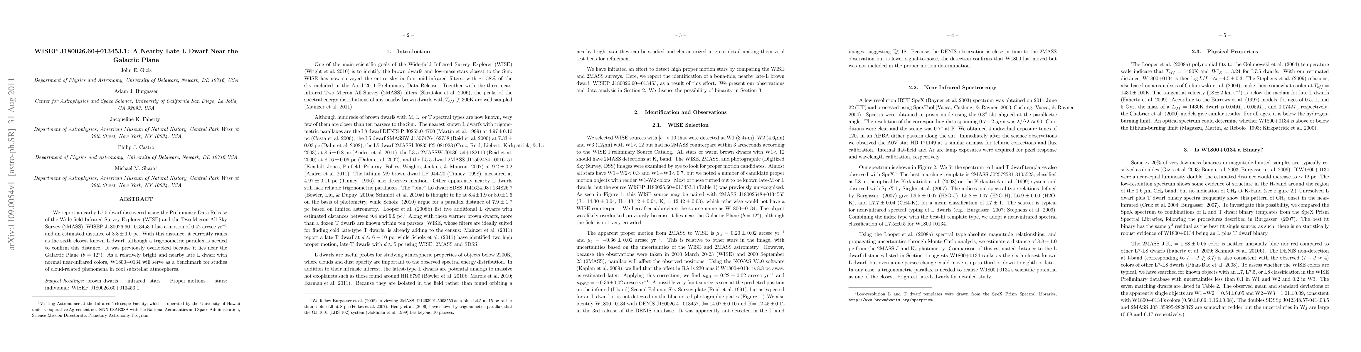 This paper reports the discovery of WISEP J180026.60+013453.1, a nearby L7.5 dwarf located at an estimated distance of 8.8 ± 1.0 pc, making it the sixth closest known L dwarf. It serves as a benchmark for studying cloud-related phenomena in cool substellar atmospheres.