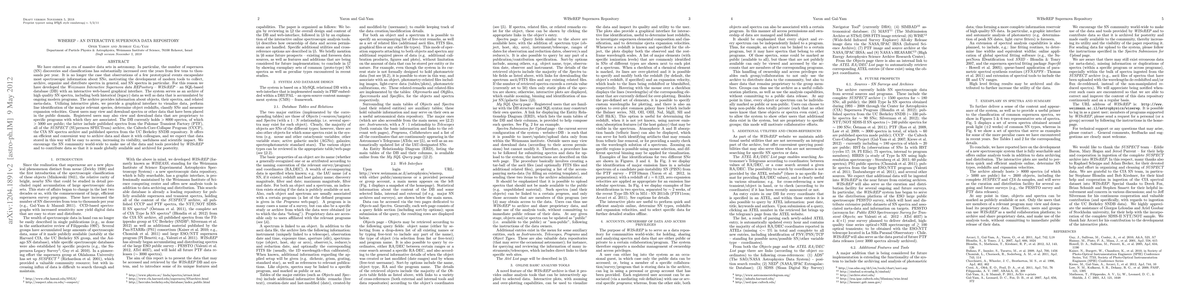 WISeREP is an SQL-based database for archiving high-quality supernova spectra, including both historical and modern data. It offers interactive tools for data visualization, classification, and analysis, and serves as a resource for both public and proprietary data, currently holding over 8000 spectra.