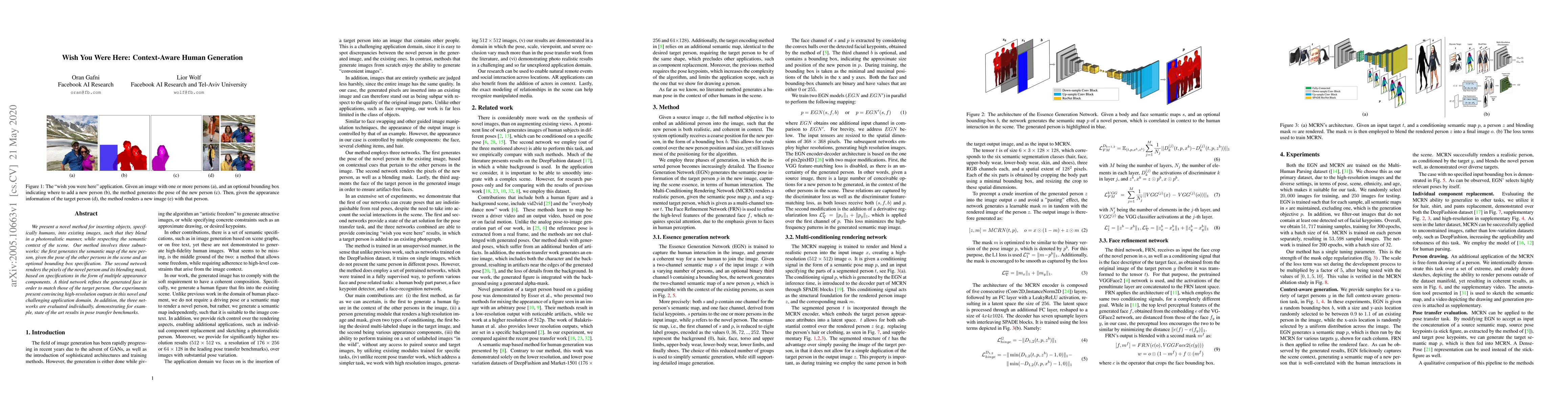 We present a novel method for inserting objects, specifically humans, into existing images, such that they blend in a photorealistic manner, while respecting the semantic context of the scene. Our method involves three subnetworks: the first generates the semantic map of the new person, given the pose of the other persons in the scene and an optional bounding box specification. The second network renders the pixels of the novel person and its blending mask, based on specifications in the form of multiple appearance components. A third network refines the generated face in order to match those of the target person. Our experiments present convincing high-resolution outputs in this novel and challenging application domain. In addition, the three networks are evaluated individually, demonstrating for example, state of the art results in pose transfer benchmarks.