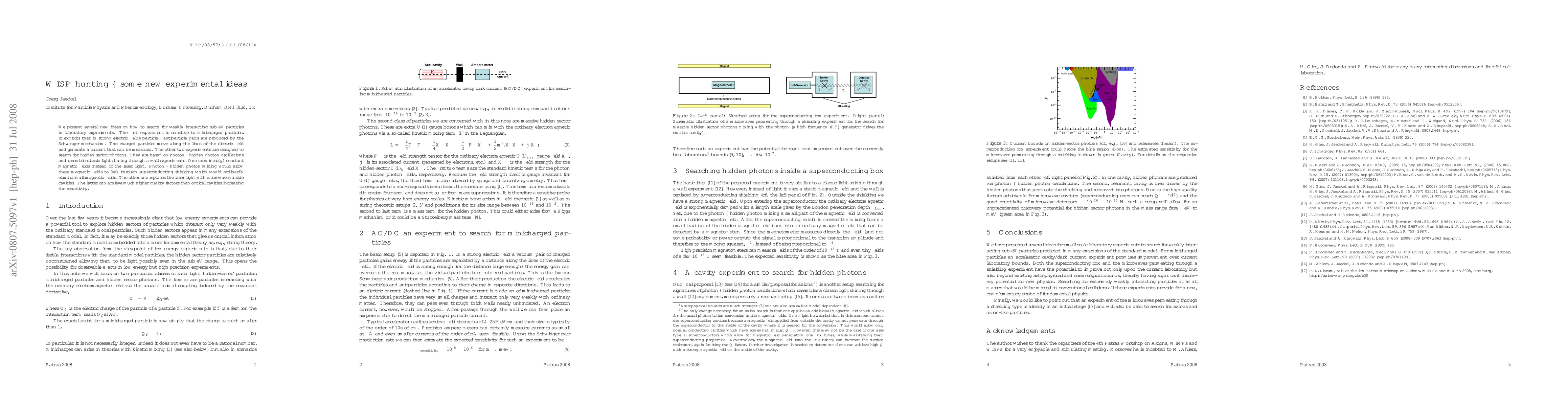 We present several new ideas on how to search for weakly interacting sub-eV particles in laboratory experiments. The first experiment is sensitive to minicharged particles. It exploits that in strong electric fields particle - antiparticle pairs are produced by the Schwinger mechanism. The charged particles move along the lines of the electric field and generate a current that can be measured. The other two experiments are designed to search for hidden-sector photons. They are based on photon - hidden photon oscillations and resemble classic light shining through a wall experiments. One uses (nearly) constant magnetic fields instead of the laser light. Photon - hidden photon mixing would allow these magnetic fields to leak through superconducting shielding which would ordinarily eliminate all magnetic fields. The other one replaces the laser light with microwaves inside cavities. The latter can achieve much higher quality factors than optical cavities increasing the sensitivity.