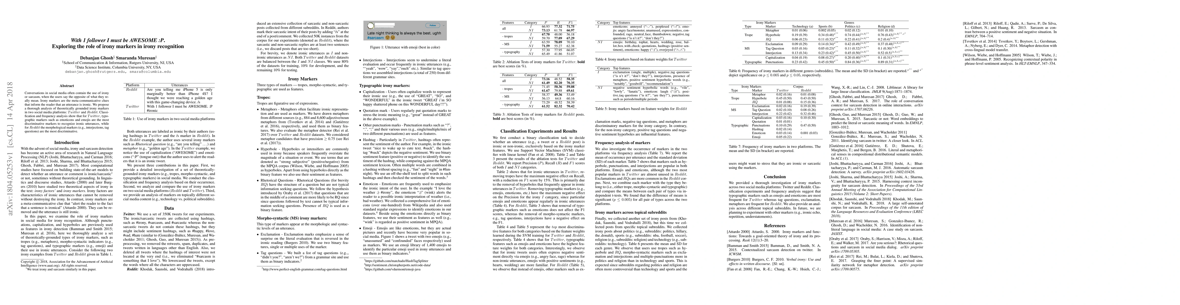 This study analyzes irony markers in social media to improve recognition of ironic utterances on Twitter and Reddit. It finds that typographic and morphological markers are used differently as cues for irony.