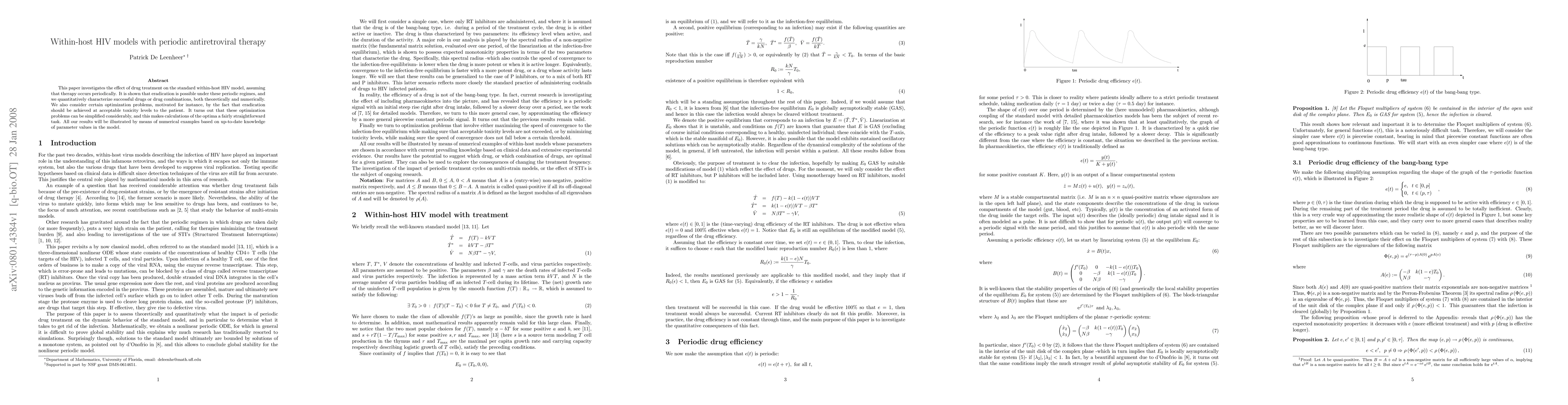 This paper explores the impact of periodic antiretroviral therapy on within-host HIV models, demonstrating that eradication is feasible under certain periodic treatment regimes. It also simplifies optimization problems to achieve eradication with acceptable toxicity levels, illustrated by numerical examples.