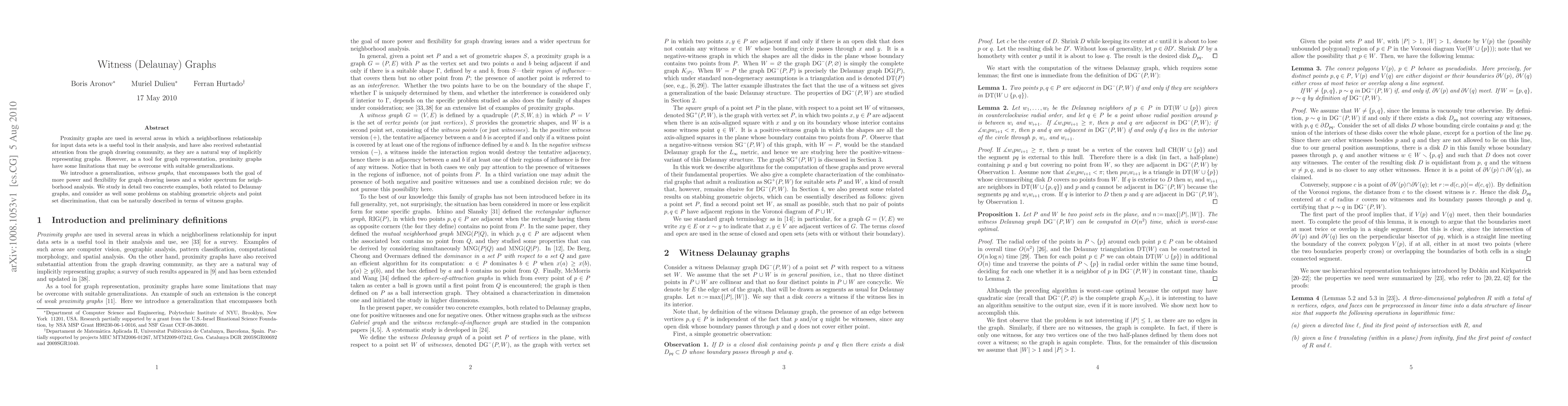 This paper introduces witness graphs, a generalization of proximity graphs, to enhance both graph representation and neighborhood analysis flexibility. It focuses on two specific examples related to Delaunay graphs and explores applications in stabbing geometric objects and point set discrimination.