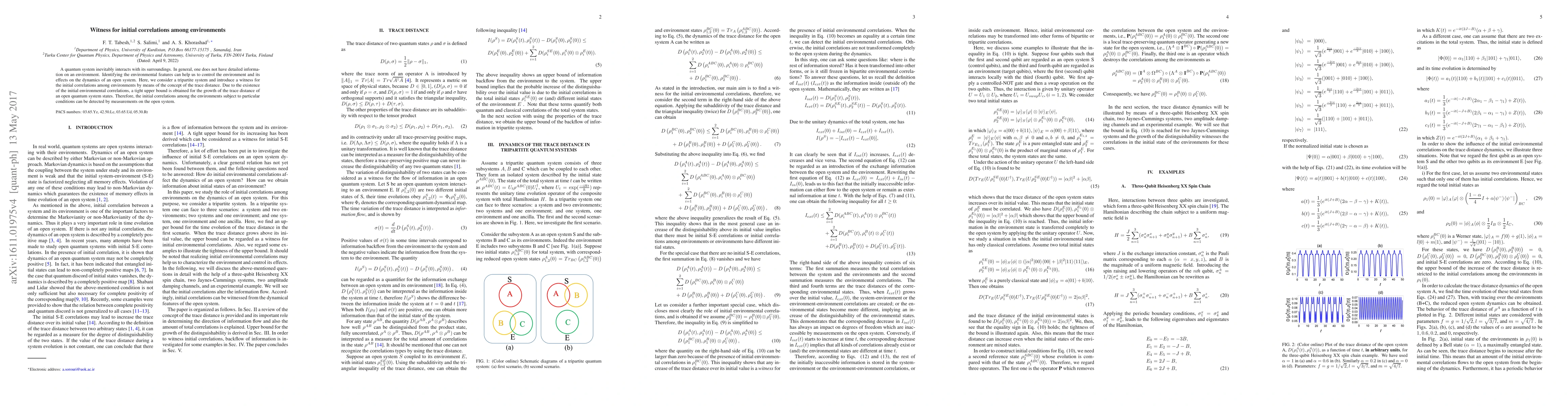 This paper introduces a witness to detect initial correlations among environments in a tripartite quantum system, using the trace distance concept. It establishes a tight upper bound for the growth of the trace distance, revealing how initial environmental correlations can be identified through measurements on the open system.