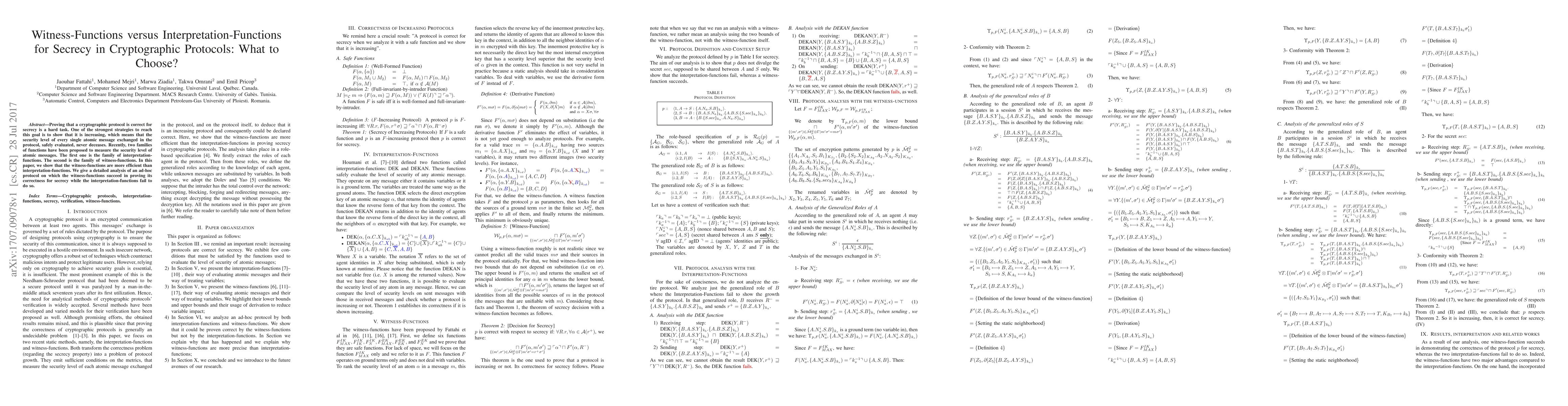 Proving that a cryptographic protocol is correct for secrecy is a hard task. One of the strongest strategies to reach this goal is to show that it is increasing, which means that the security level of every single atomic message exchanged in the protocol, safely evaluated, never deceases. Recently, two families of functions have been proposed to measure the security level of atomic messages. The first one is the family of interpretation-functions. The second is the family of witness-functions. In this paper, we show that the witness-functions are more efficient than interpretation-functions. We give a detailed analysis of an ad-hoc protocol on which the witness-functions succeed in proving its correctness for secrecy while the interpretation-functions fail to do so.
