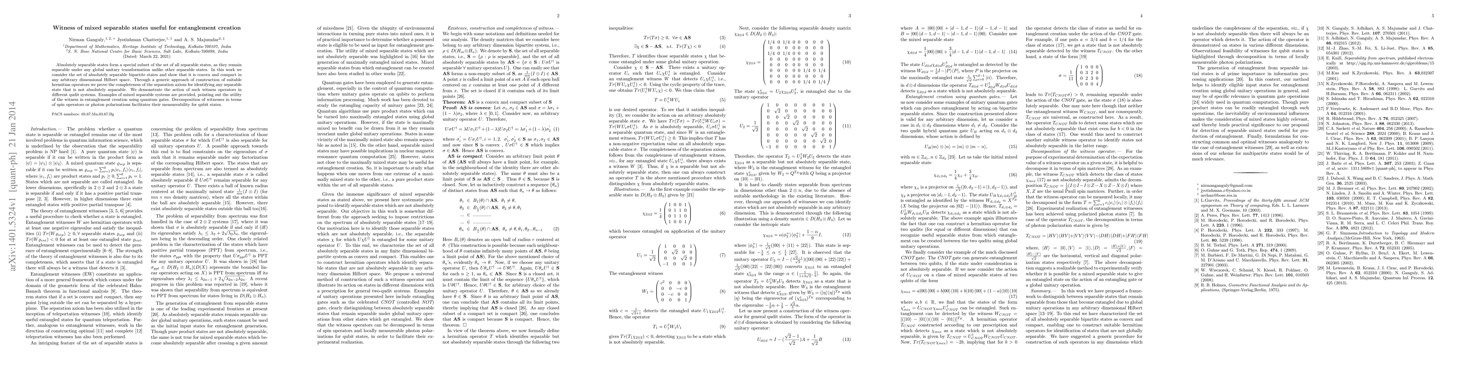 This paper explores absolutely separable states, proving they are convex and compact in any dimensional Hilbert space. It introduces witness operators to identify non-absolutely separable states and demonstrates their utility in entanglement creation through quantum gates, with examples provided for mixed separable systems.