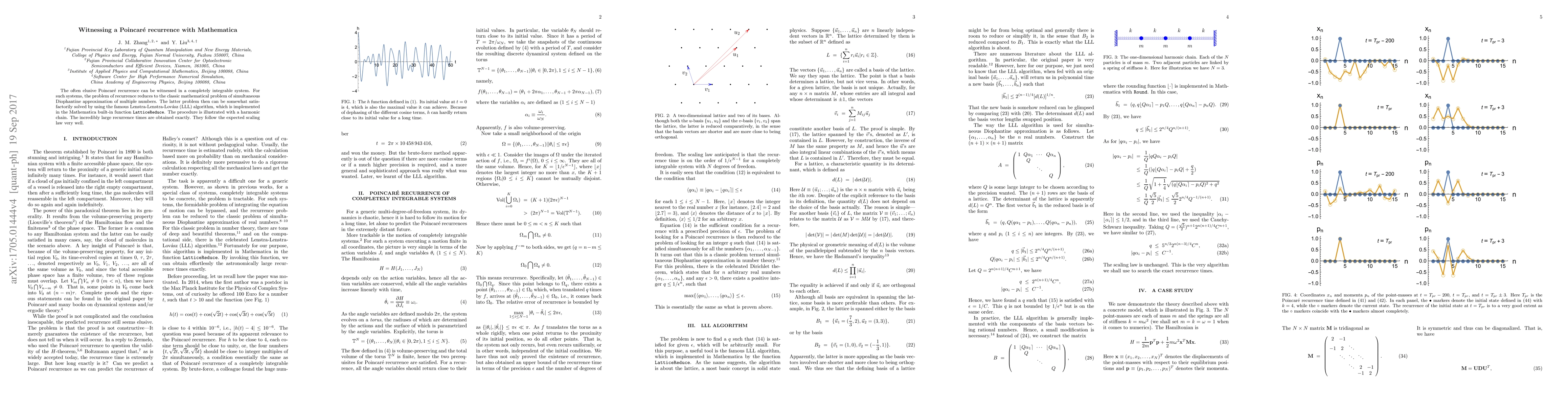 This paper demonstrates the Poincar\'e recurrence in a separable system using Mathematica's LLL algorithm, specifically the \verb"LatticeReduce" function, to solve the problem of simultaneous Diophantine approximation, with exact large recurrence times aligning well with theoretical predictions.