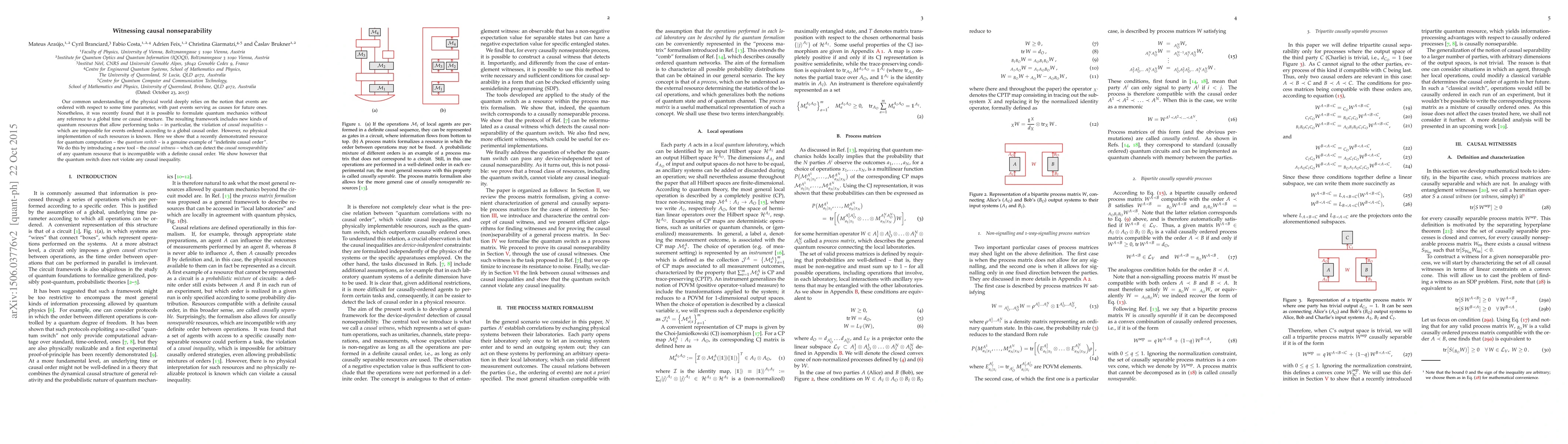 This paper demonstrates that the quantum switch, a resource for quantum computation, exhibits "indefinite causal order," a phenomenon where quantum mechanics can operate without a global causal structure. It introduces the causal witness tool to detect such causal nonseparability, but concludes that the quantum switch does not violate causal inequalities.