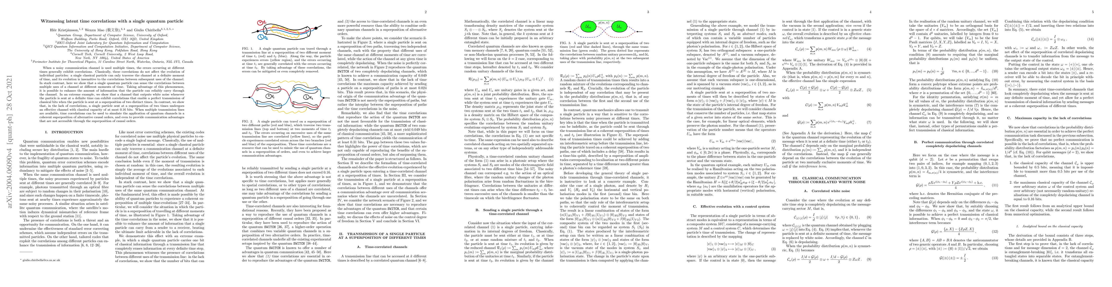 When a noisy communication channel is used multiple times, the errors occurring at different times generally exhibit correlations. Classically, these correlations do not affect the evolution of individual particles: a single classical particle can only traverse the channel at a definite moment of time, and its evolution is insensitive to the correlations between subsequent uses of the channel. In stark contrast, here we show that a single quantum particle can sense the correlations between multiple uses of a channel at different moments of time. In an extreme example, we show that a channel that outputs white noise when the particle is sent at a definite time can exhibit correlations that enable a perfect transmission of classical bits when the particle is sent at a superposition of two times. In contrast, we show that, in the lack of correlations, a single particle sent at a superposition of two times undergoes an effective channel with classical capacity of at most 0.16 bits. When multiple transmission lines are available, time correlations can be used to simulate the application of quantum channels in a coherent superposition of alternative causal orders, and even to provide communication advantages that are not accessible through the superposition of causal orders.