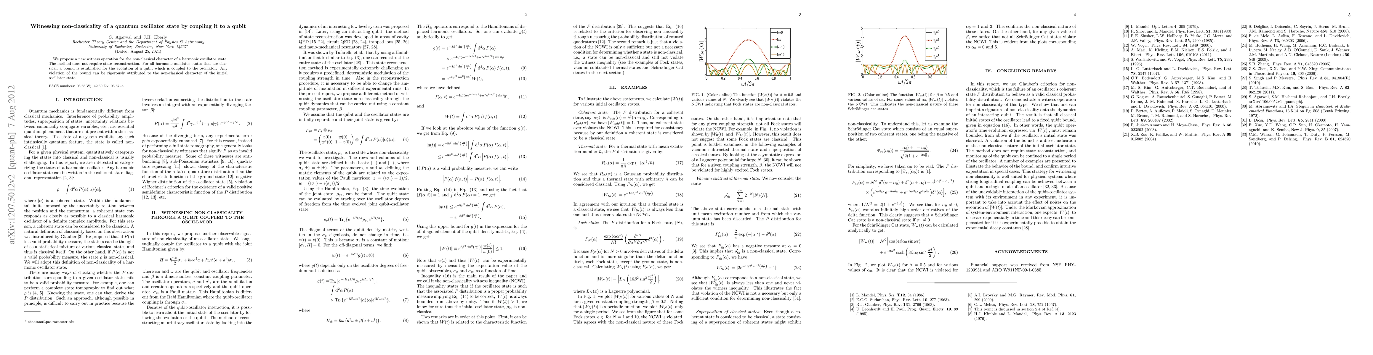 We propose a new witness operation for the non-classical character of a harmonic oscillator state. The method does not require state reconstruction. For all harmonic oscillator states that are classical, a bound is established for the evolution of a qubit which is coupled to the oscillator. Any violation of the bound can be rigorously attributed to the non-classical character of the initial oscillator state.
