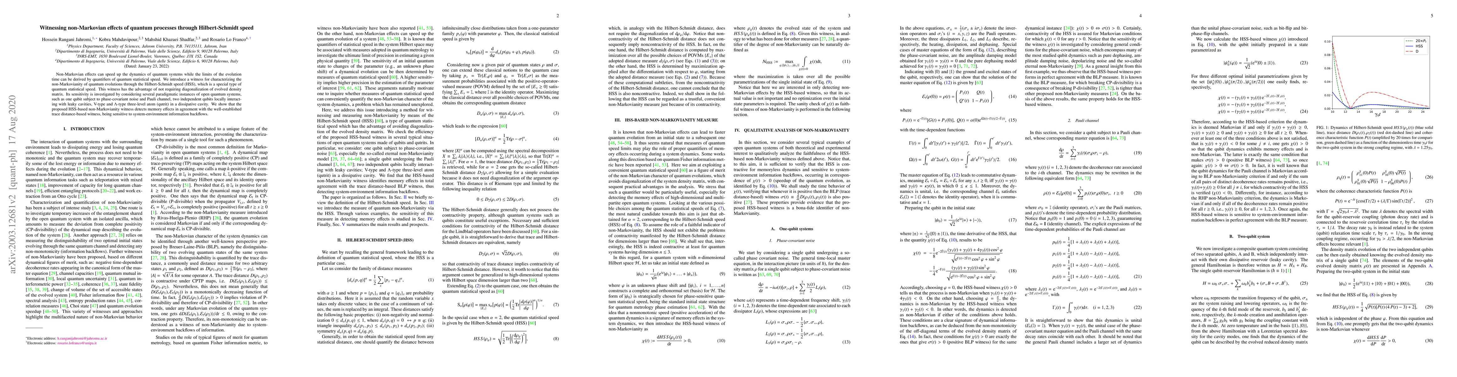 Non-Markovian effects can speed up the dynamics of quantum systems while the limits of the evolution time can be derived by quantifiers of quantum statistical speed. We introduce a witness for characterizing the non-Markovianity of quantum evolutions through the Hilbert-Schmidt speed (HSS), which is a special type of quantum statistical speed. This witness has the advantage of not requiring diagonalization of evolved density matrix. Its sensitivity is investigated by considering several paradigmatic instances of open quantum systems, such as one qubit subject to phase-covariant noise and Pauli channel, two independent qubits locally interacting with leaky cavities, V-type and $\Lambda $-type three-level atom (qutrit) in a dissipative cavity. We show that the proposed HSS-based non-Markovianity witness detects memory effects in agreement with the well-established trace distance-based witness, being sensitive to system-environment information backflows.