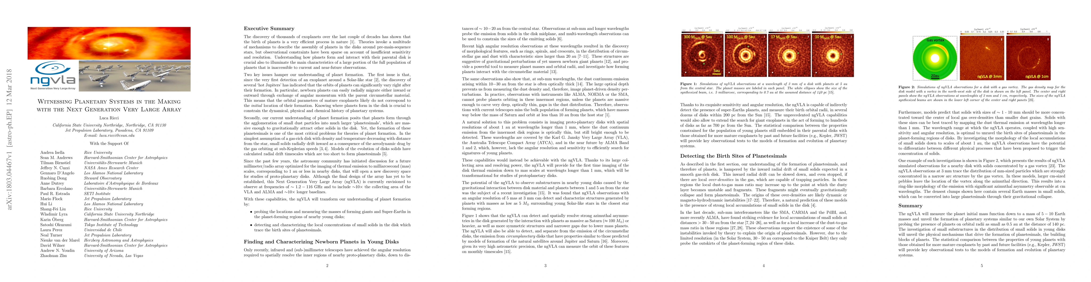 This paper explores the formation and evolution of planetary systems using the Next Generation Very Large Array (ngVLA), emphasizing the need for improved observational sensitivity and resolution to understand the mechanisms behind planet formation and their interaction with protoplanetary disks. The ngVLA is expected to provide critical insights into these processes, enhancing our understanding of the broader population of planets.