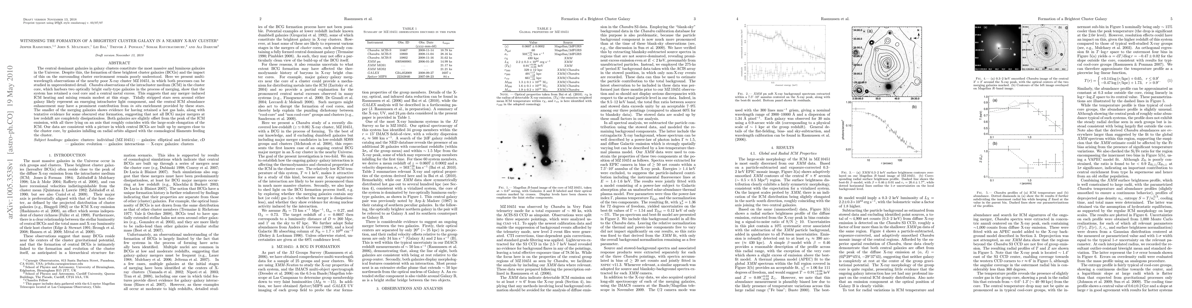 Multi-wavelength observations, including Chandra X-ray data, were used to study the nearby poor X-ray cluster MZ 10451, focusing on two merging early-type galaxies in the process of forming the brightest cluster galaxy (BCG).
