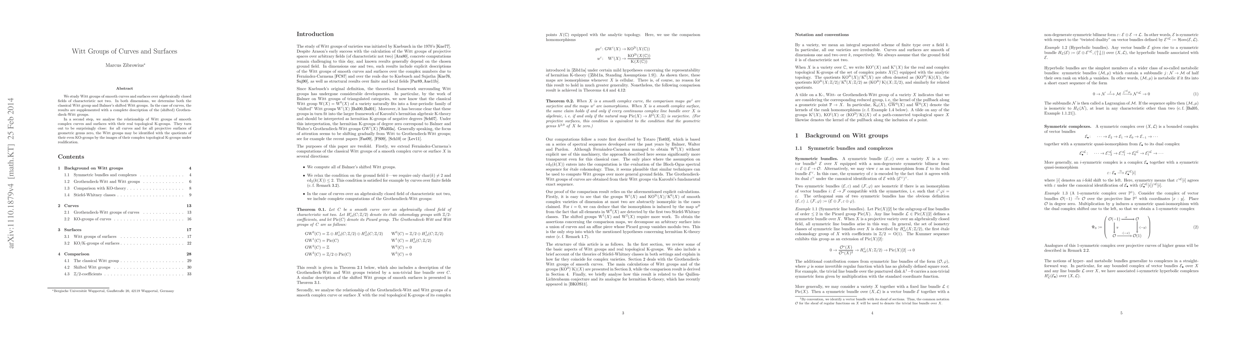 This paper studies the Witt groups of smooth curves and surfaces over algebraically closed fields of characteristic not two, determining both classical and shifted Witt groups. It also examines the relationship between these algebraic Witt groups and real topological K-groups, revealing a close correspondence for curves and projective surfaces of genus zero.