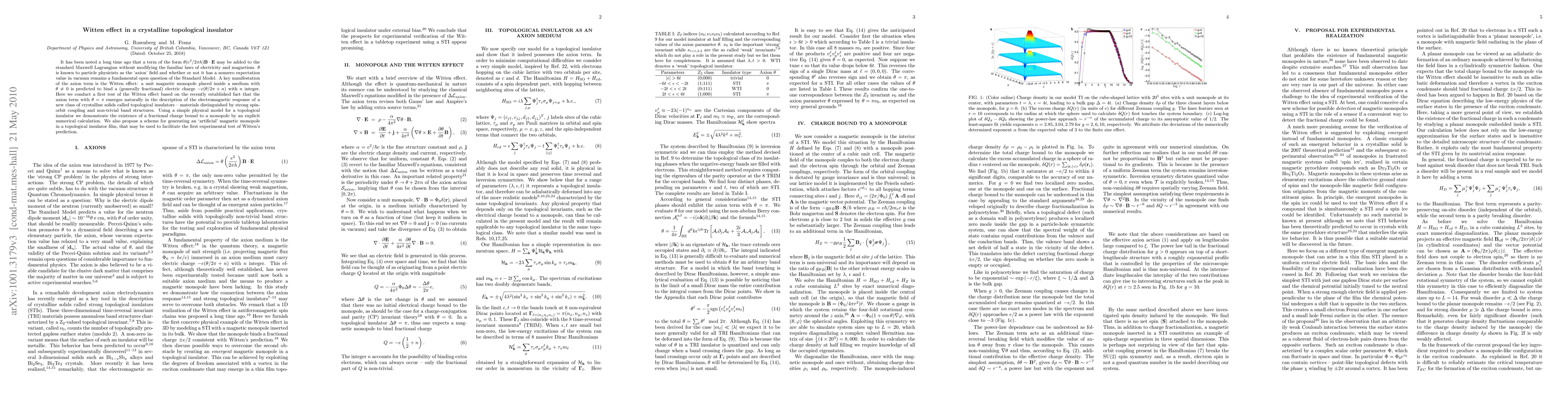 This paper explores the Witten effect in crystalline topological insulators, demonstrating the existence of a fractional electric charge bound to a magnetic monopole due to an axion field term. It proposes a method for generating artificial magnetic monopoles in these materials to facilitate experimental verification of Witten's prediction.