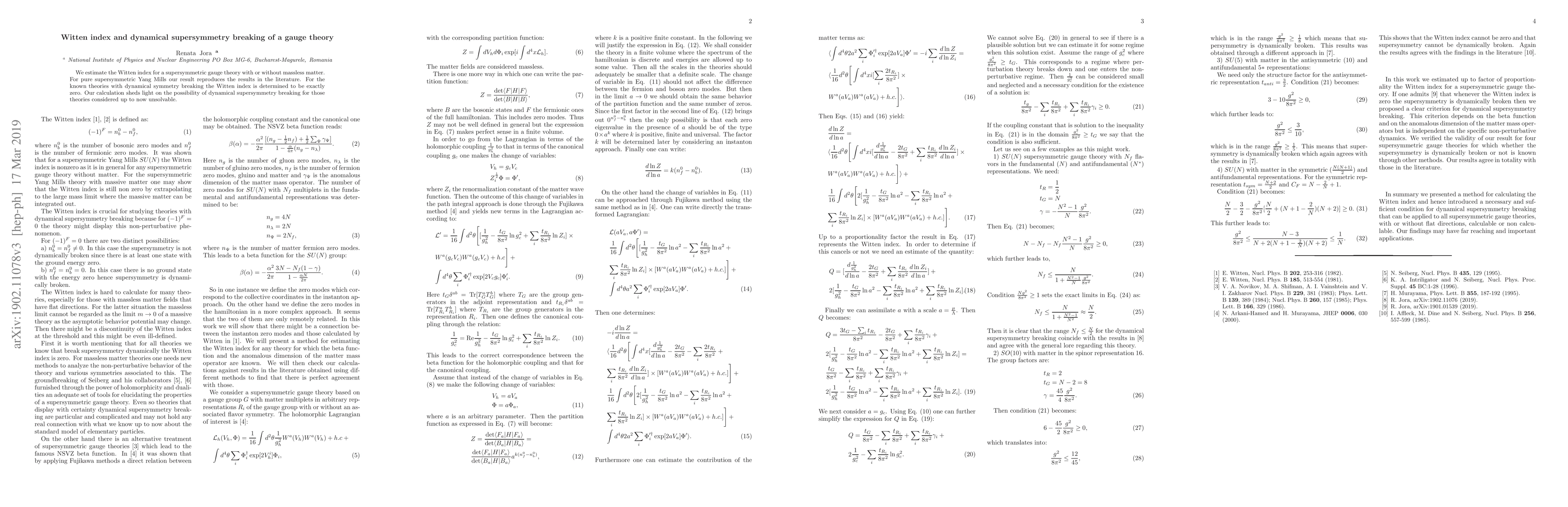 This paper calculates the Witten index for supersymmetric gauge theories, confirming existing results for pure Yang-Mills and finding it to be zero for theories with dynamical symmetry breaking, thus exploring the potential for dynamical supersymmetry breaking in previously intractable scenarios.