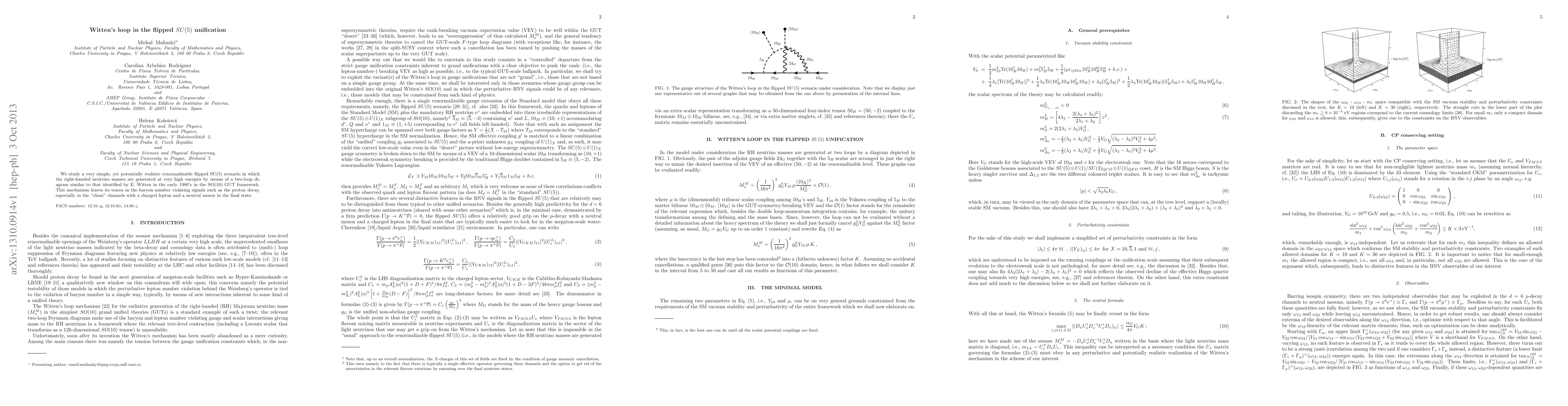 We study a very simple, yet potentially realistic renormalizable flipped SU(5) scenario in which the right-handed neutrino masses are generated at very high energies by means of a two-loop diagram similar to that identified by E. Witten in the early 1980's in the SO(10) GUT framework. This mechanism leaves its traces in the baryon number violating signals such as the proton decay, especially in the "clean" channels with a charged lepton and a neutral meson in the final state.