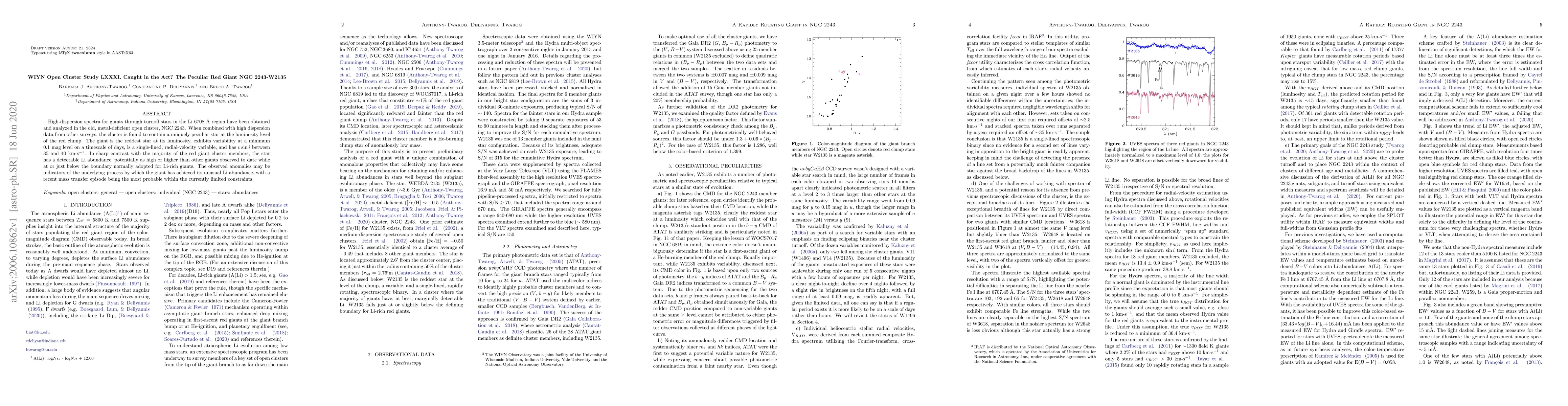 High-dispersion spectra for giants through turnoff stars in the Li 6708 Angstrom region have been obtained and analyzed in the old, metal-deficient open cluster, NGC 2243. When combined with high dispersion data from other surveys, the cluster is found to contain a uniquely peculiar star at the luminosity level of the red clump. The giant is the reddest star at its luminosity, exhibits variability at a minimum 0.1 mag level on a timescale of days, is a single-lined, radial-velocity variable, and has V_sin(i) between 35 and 40 km/sec. In sharp contrast with the majority of the red giant cluster members, the star has a detectable Li abundance, potentially as high or higher than other giants observed to date while at or just below the boundary normally adopted for Li-rich giants. The observed anomalies may be indicators of the underlying process by which the giant has achieved its unusual Li abundance, with a recent mass transfer episode being the most probable within the currently limited constraints.