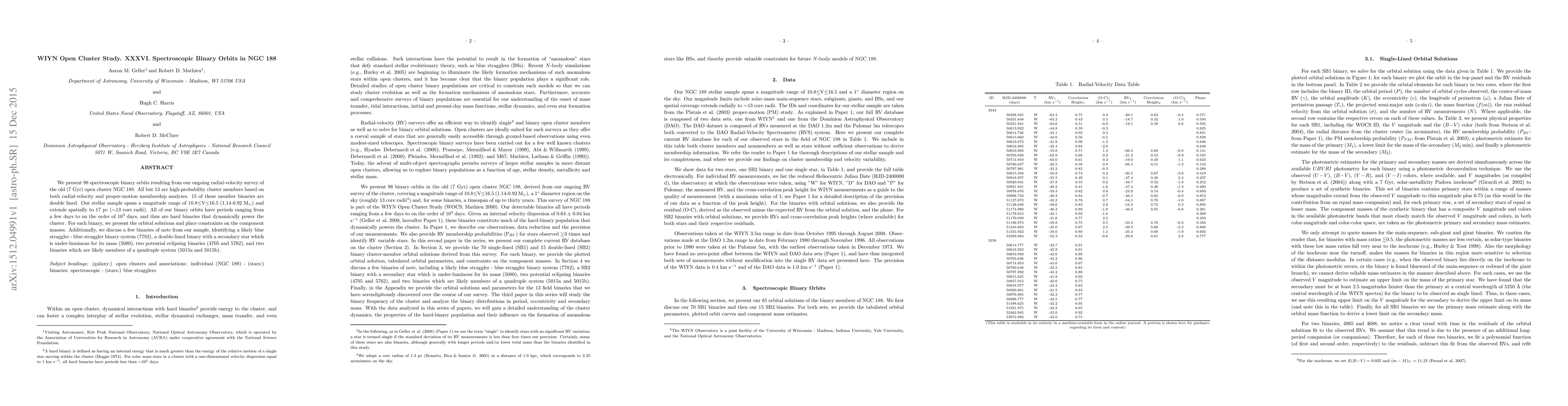 This paper presents 98 spectroscopic binary orbits from a radial-velocity survey of the old open cluster NGC 188, with most being high-probability cluster members. The study identifies several notable binaries, including a blue straggler-blue straggler system and two potential eclipsing binaries.