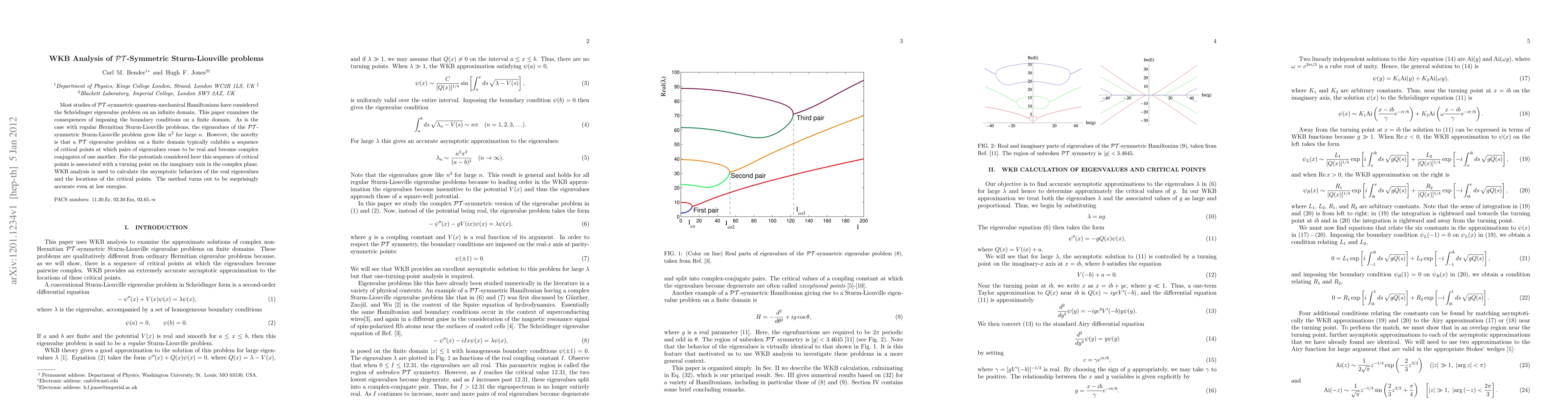 Researchers used WKB analysis to study PT-symmetric Sturm-Liouville problems on finite domains, finding that eigenvalues grow like $n^2$ for large n and exhibit critical points where pairs of eigenvalues become complex conjugates, with surprising accuracy even at low energies.