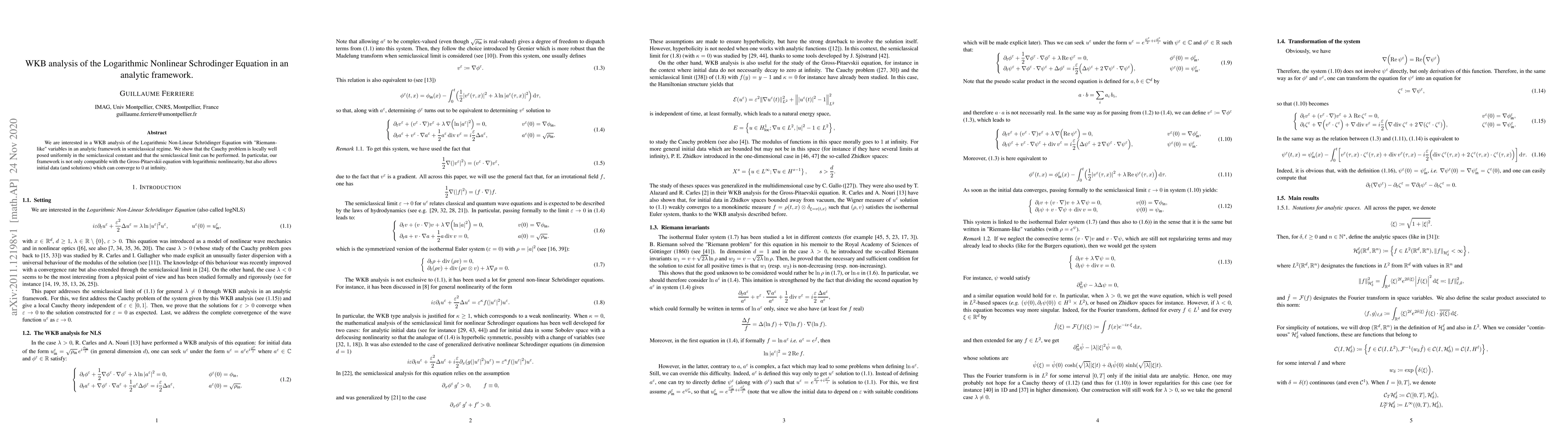 Researchers analyzed a specific nonlinear equation using WKB analysis in an analytic framework, finding that it is locally well posed and can perform the semiclassical limit, allowing for initial data with solutions converging to zero at infinity.