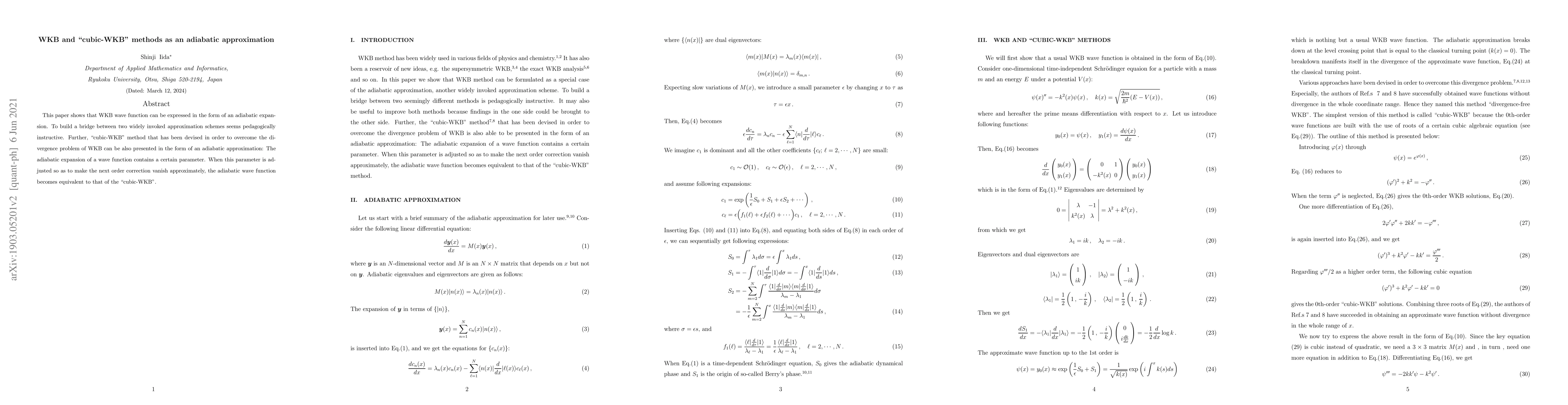 The research provides a new way to express WKB and cubic-WKB methods as approximations using adiabatic expansion.