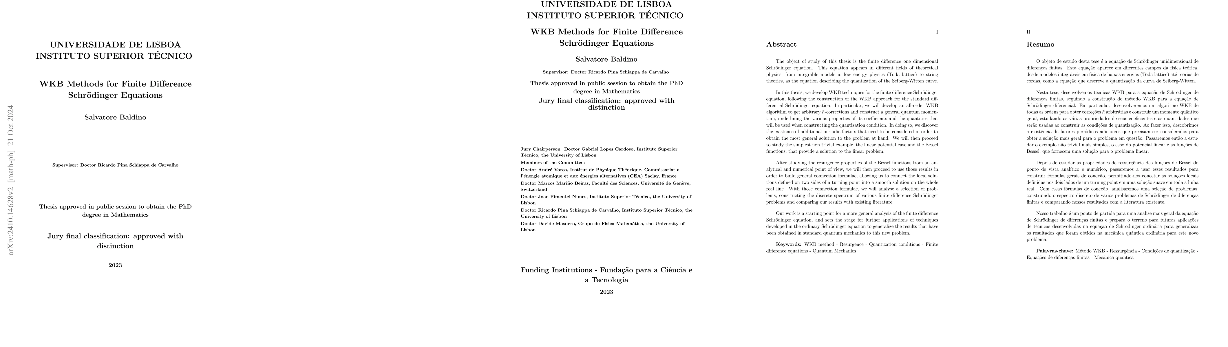 In this thesis, we develop WKB techniques for the finite difference Schrodinger equation, following the construction of the WKB approach for the standard differential Schrodinger equation. In particular, we will develop an all-order WKB algorithm to get arbitrary hbar-corrections and construct a general quantum momentum, underlining the various properties of its coefficients and the quantities that will be used when constructing the quantization condition. In doing so, we discover the existence of additional periodic factors that need to be considered in order to obtain the most general solution to the problem at hand. We will then proceed to study the simplest non trivial example, the linear potential case and the Bessel functions, that provide a solution to the linear problem. After studying the resurgence properties of the Bessel functions from an analytical and numerical point of view, we will then proceed to use those results in order to build general connection formulae, allowing us to connect the local solutions defined on two sides of a turning point into a smooth solution on the whole real line. With those connection formulae, we will analyse a selection of problems, constructing the discrete spectrum of various finite difference Schrodinger problems and comparing our results with existing literature.