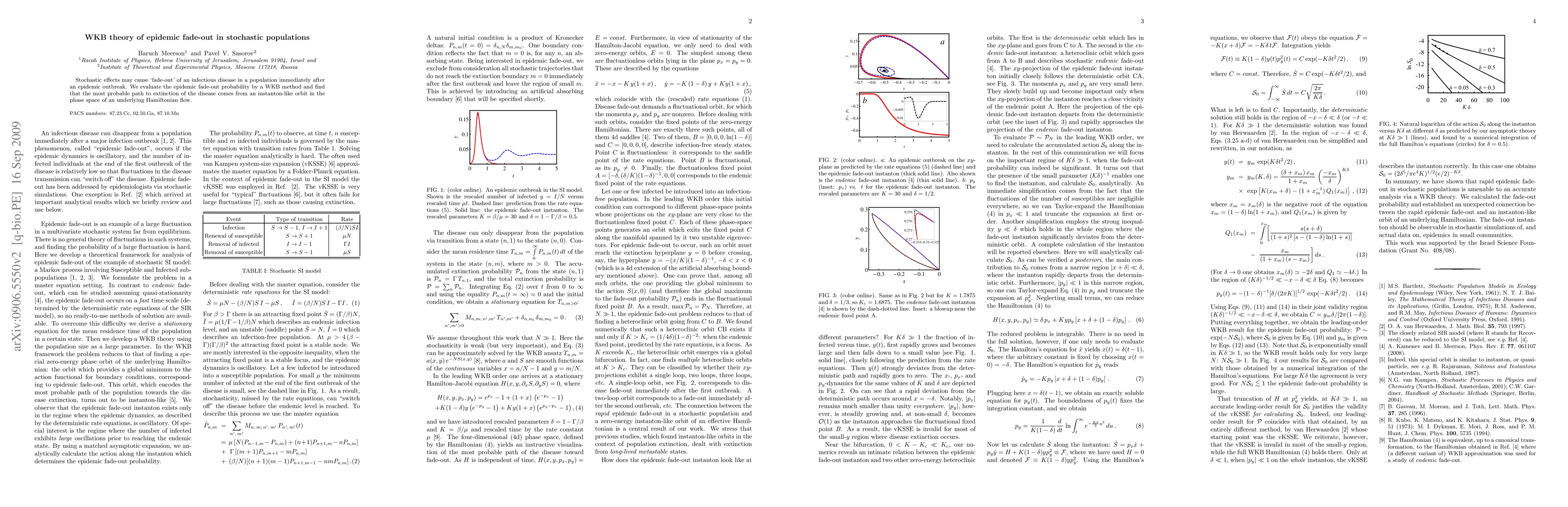Stochastic effects may cause fade-out of an infectious disease in a population immediately after an epidemic outbreak. We develop WKB theory to determine the most probable path of the system toward epidemic fade-out and to evaluate the fade-out probability. The most probable path is an instanton-like orbit in the phase space of the underlying Hamiltonian flow.