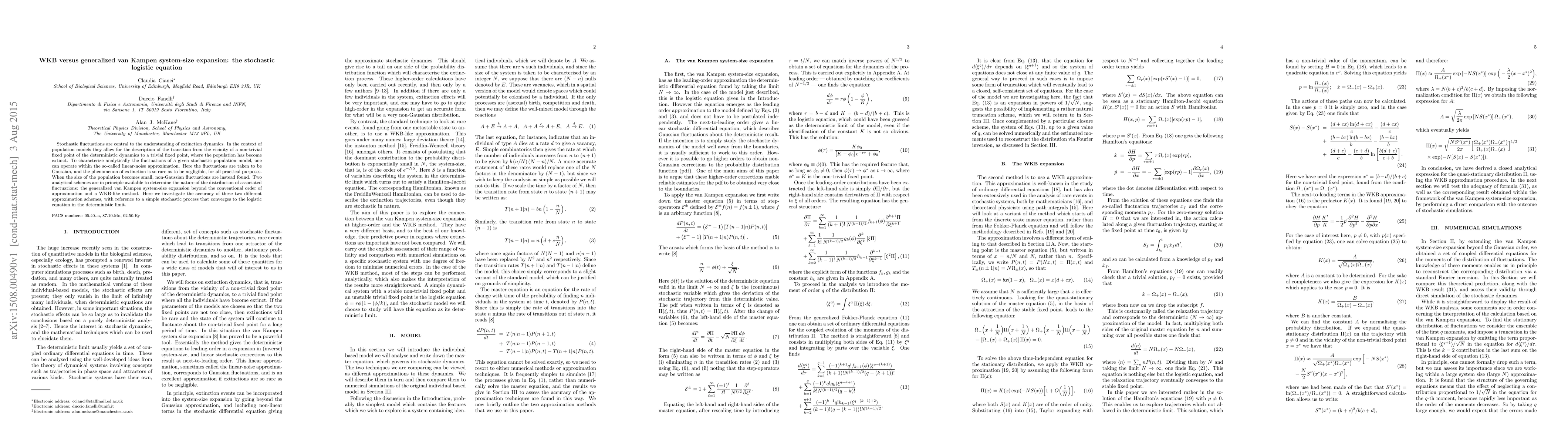 Stochastic fluctuations are central to the understanding of extinction dynamics. In the context of population models they allow for the description of the transition from the vicinity of a non-trivial fixed point of the deterministic dynamics to a trivial fixed point, where the population has become extinct. To characterize analytically the fluctuations of a given stochastic population model, one can operate within the so-called linear-noise approximation. Here the fluctuations are taken to be Gaussian, and the phenomenon of extinction is so rare as to be negligible, for all practical purposes. When the size of the population becomes small, non-Gaussian fluctuations are instead found. Two analytical schemes are in principle available to determine the nature of the distribution of associated fluctuations: the generalized van Kampen system-size expansion beyond the conventional order of approximation and a WKB-like method. Here we investigate the accuracy of these two different approximation schemes, with reference to a simple stochastic process that converges to the logistic equation in the deterministic limit.