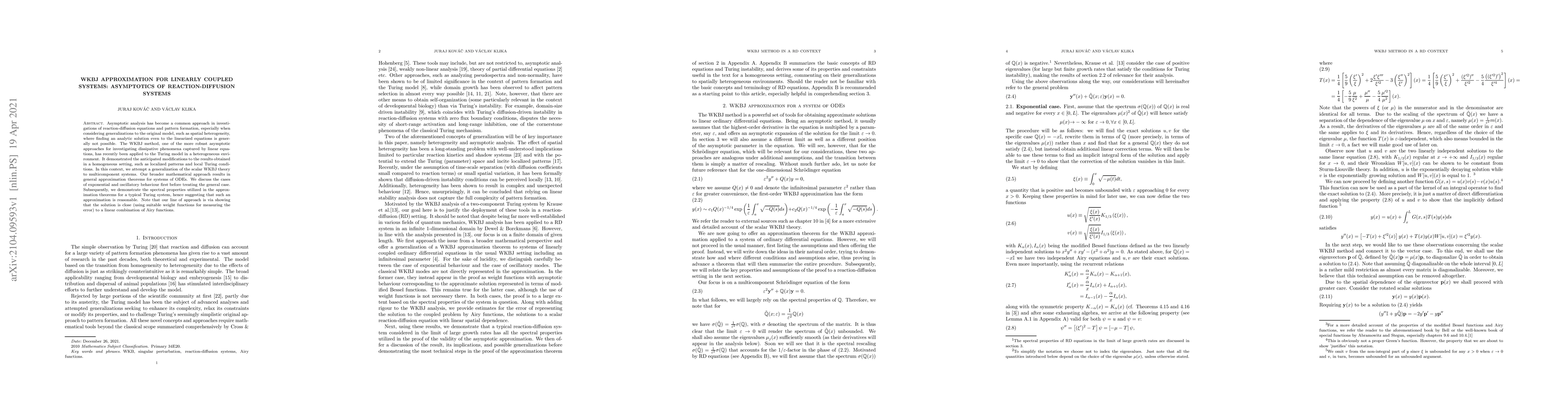 Asymptotic analysis has become a common approach in investigations of reaction-diffusion equations and pattern formation, especially when considering generalizations to the original model, such as spatial heterogeneity, where finding an analytic solution even to the linearized equations is generally not possible. The WKBJ method, one of the more robust asymptotic approaches for investigating dissipative phenomena captured by linear equations, has recently been applied to the Turing model in a heterogeneous environment. It demonstrated the anticipated modifications to the results obtained in a homogeneous setting, such as localized patterns and local Turing conditions. In this context, we attempt a generalization of the scalar WKBJ theory to multicomponent systems. Our broader mathematical approach results in general approximation theorems for systems of ODEs. We discuss the cases of exponential and oscillatory behaviour first before treating the general case. Subsequently, we demonstrate the spectral properties utilized in the approximation theorems for a typical Turing system, hence suggesting that such an approximation is reasonable. Note that our line of approach is via showing that the solution is close (using suitable weight functions for measuring the error) to a linear combination of Airy functions.