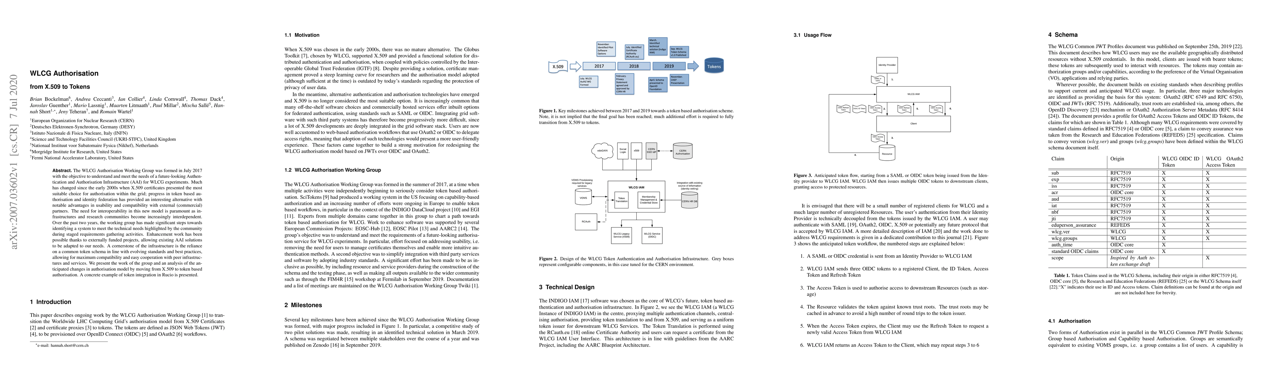 The WLCG Authorisation Working Group transitioned from X.509 certificates to token-based authorisation to enhance usability and compatibility with external partners, focusing on interoperability and a common token schema for seamless cooperation with other infrastructures. The group's efforts, supported by external funding, resulted in a new authorisation model with a practical implementation in Rucio.