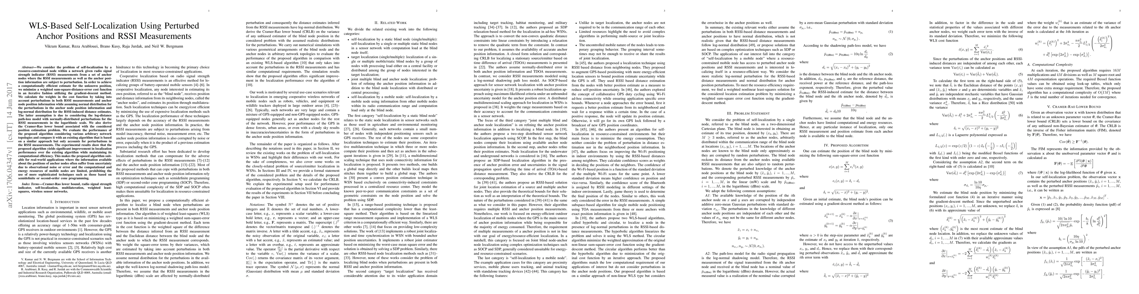 This paper proposes an iterative gradient-descent method for self-localization in resource-constrained networks, accounting for perturbations in both RSSI measurements and anchor positions. The algorithm achieves improved localization performance compared to existing methods, suitable for real-world applications with limited computational resources.